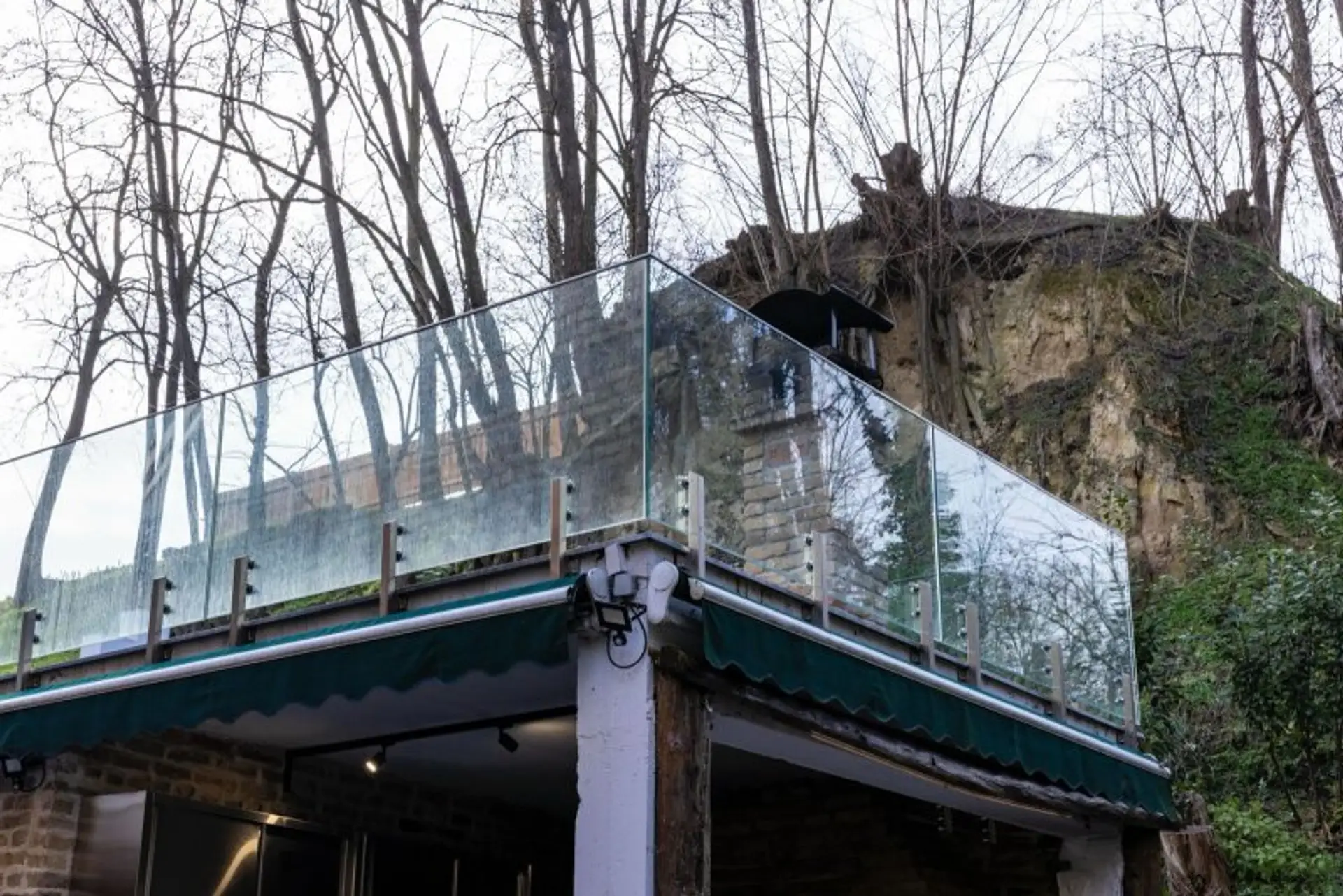 • Glasüberdachte Terrasse aus Sicherheitsglas (2x 8 mm) mit individuell gefertigten Stahlträgern