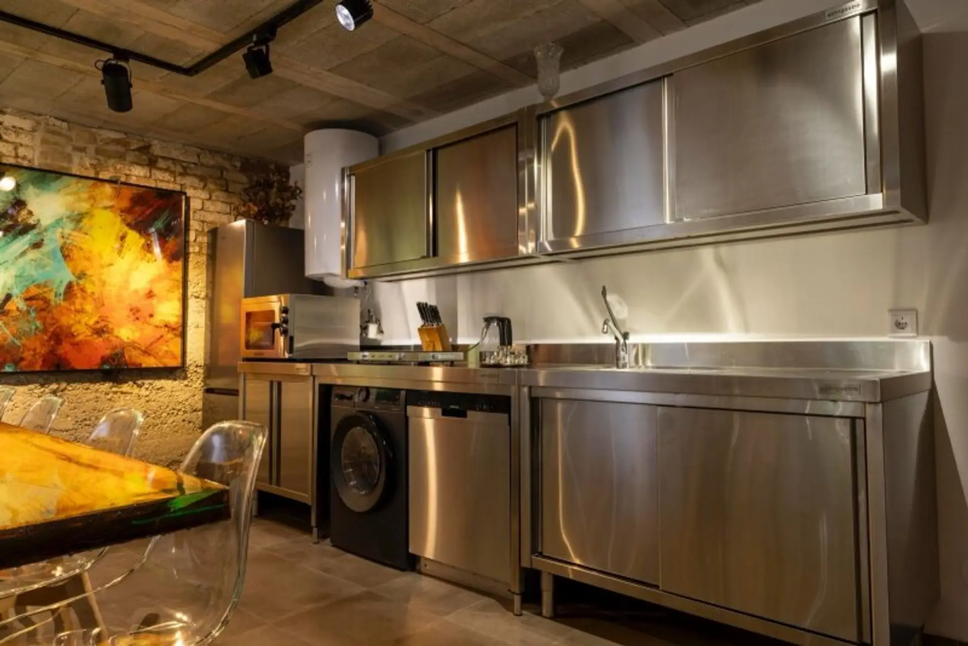 • Exklusive GGM-Gastro-Küche mit hochwertigen Geräten (Geschirrspüler, Waschmaschine, Kühlschrank mit Gefriertruhe, Heißluft-Backofen, Ceranfeld)