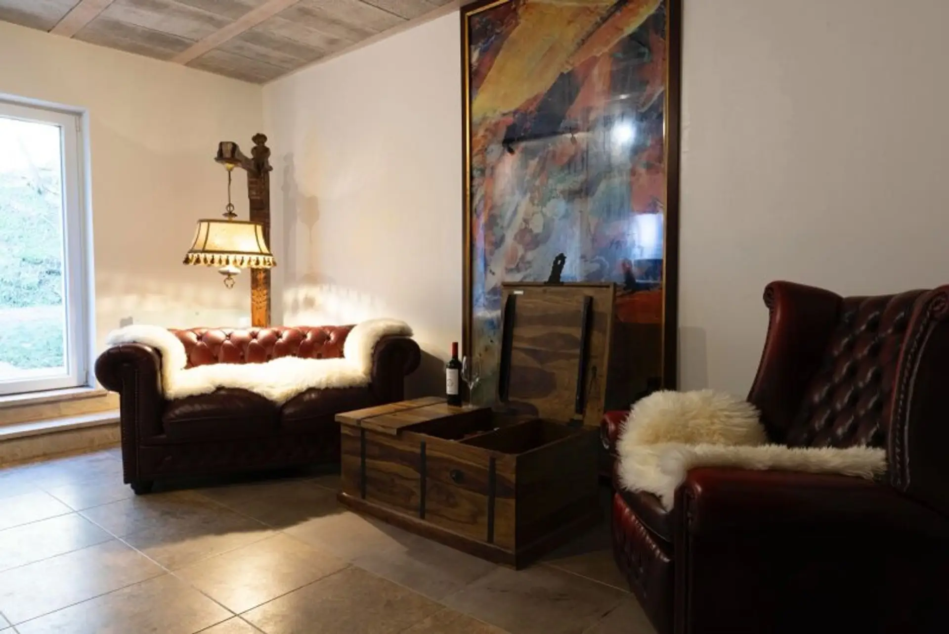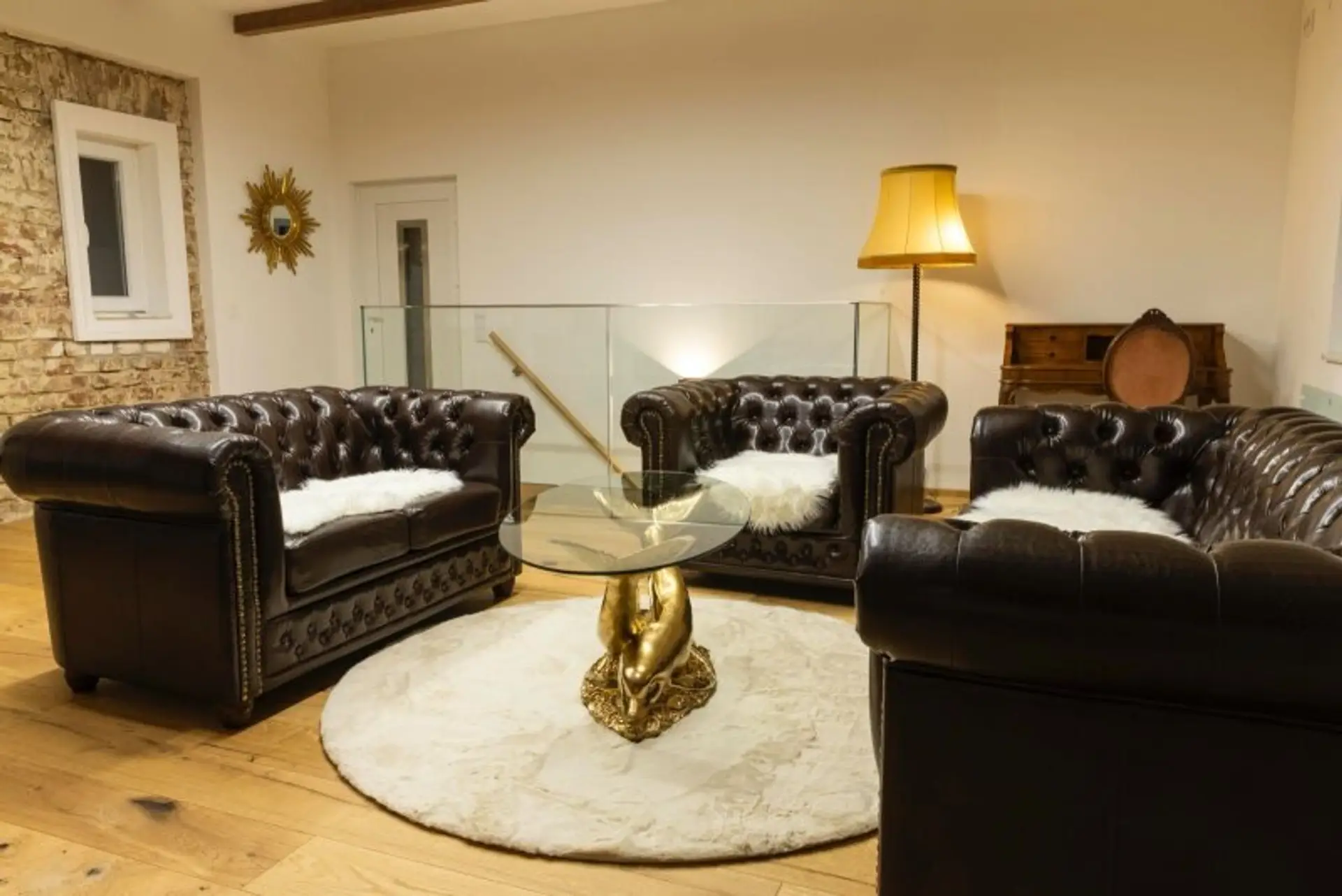 • Hochwertige Chesterfield-Garnitur (teilweise ausziehbar)