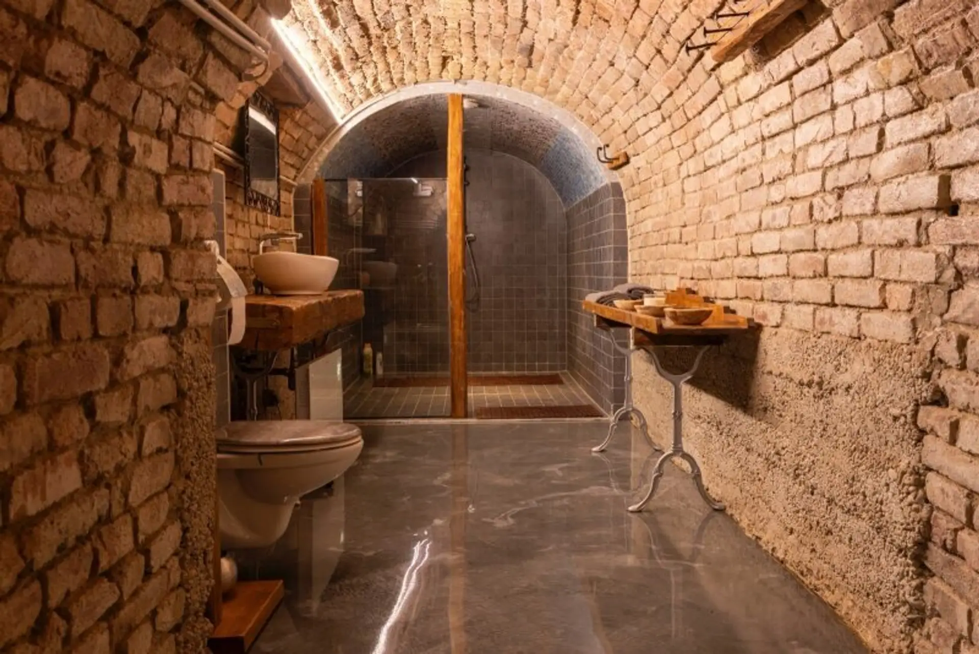 • Einzigartige Badeoase im Gewölbestil mit 3D-Epoxidharzboden