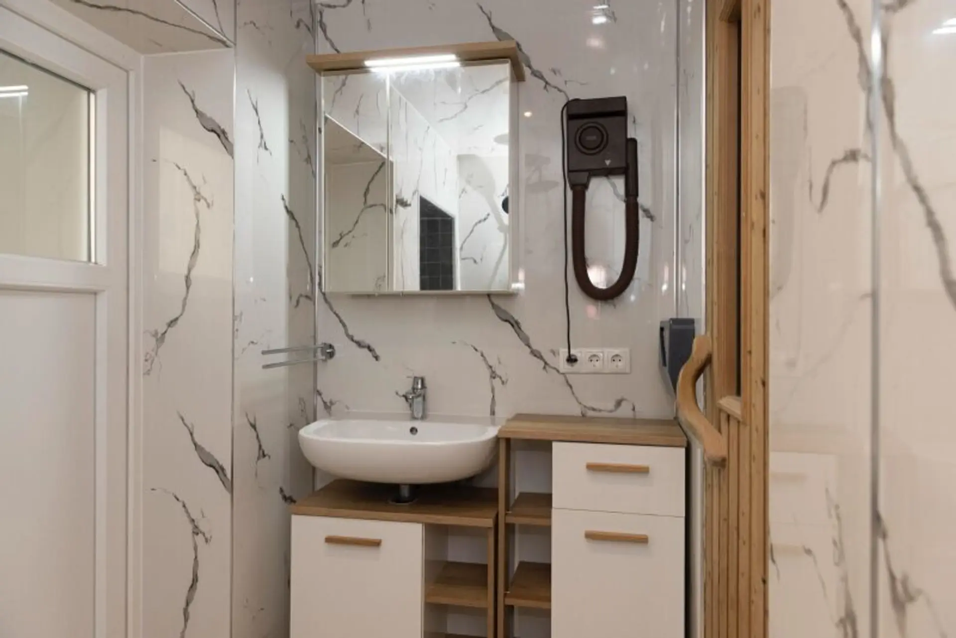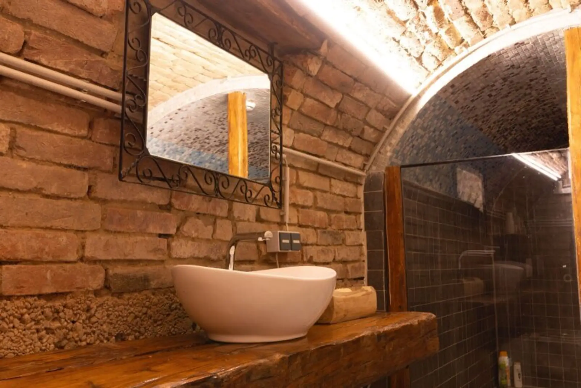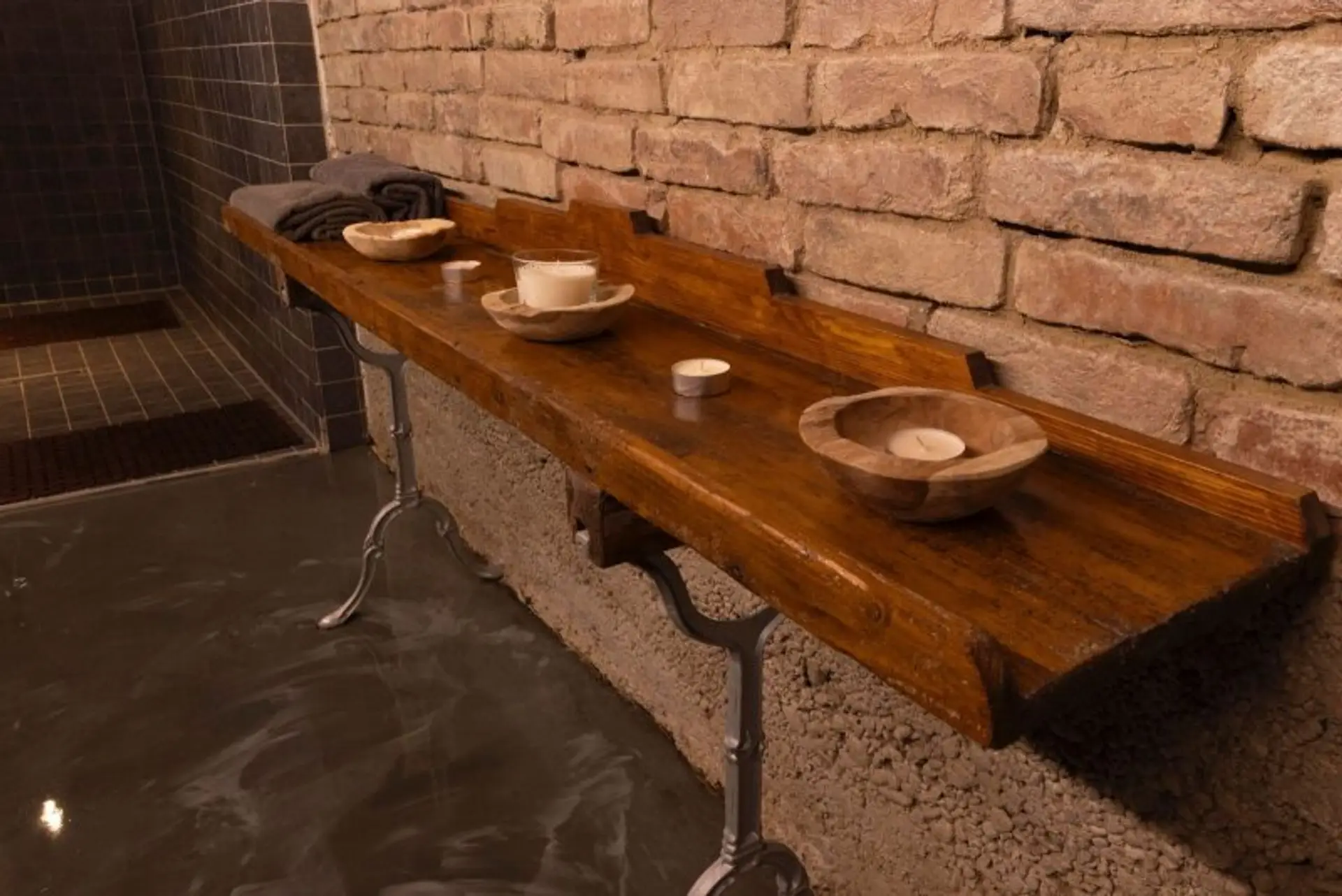 • Großzügige Dusche (ca. 4 m²), alle Elemente handgefertigt