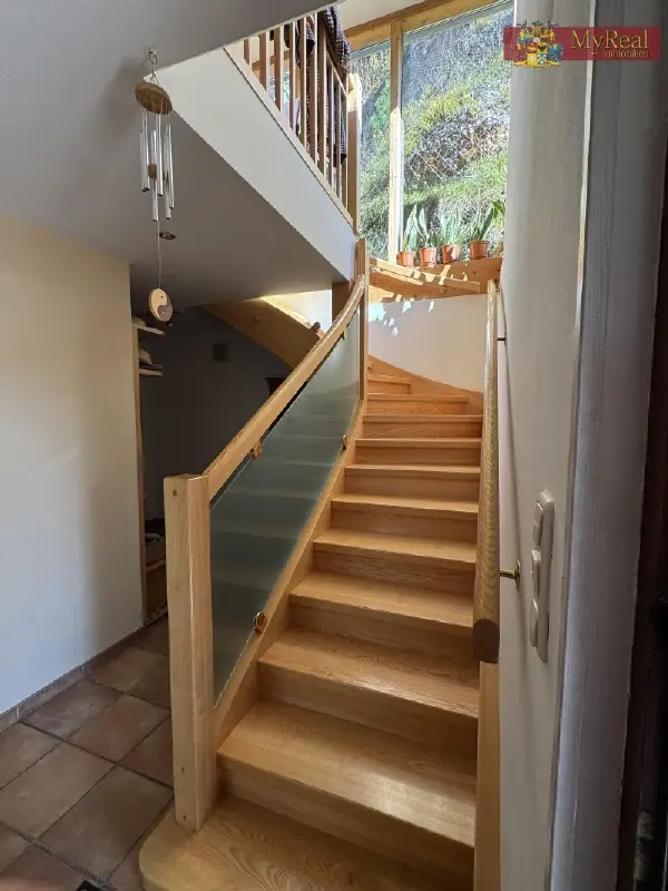 Über eine dekorative Holzstiege gelangt man in das lichtdurchflutete Obergeschoss. Hier entfaltet sich der eigentliche Wohntraum: