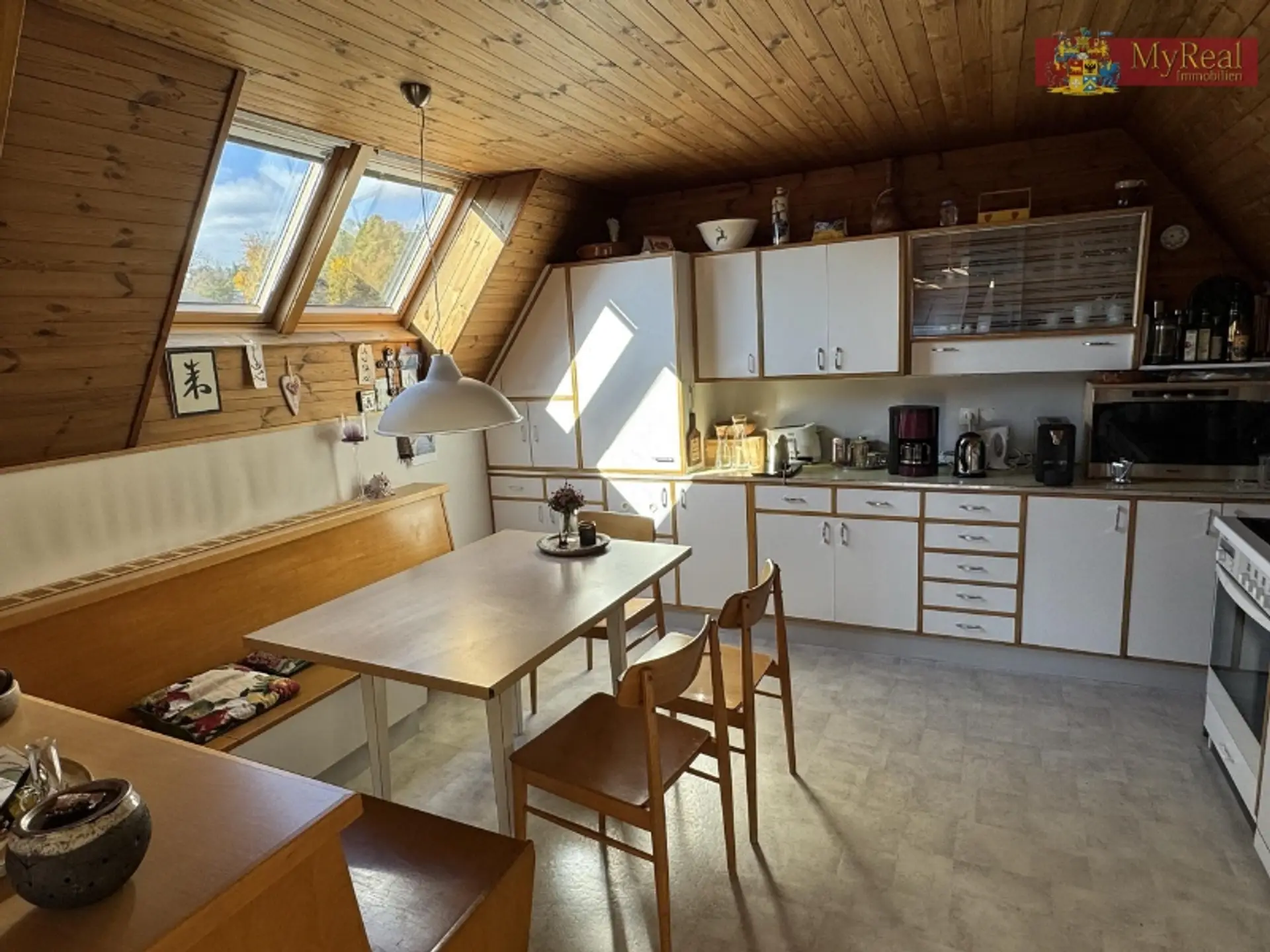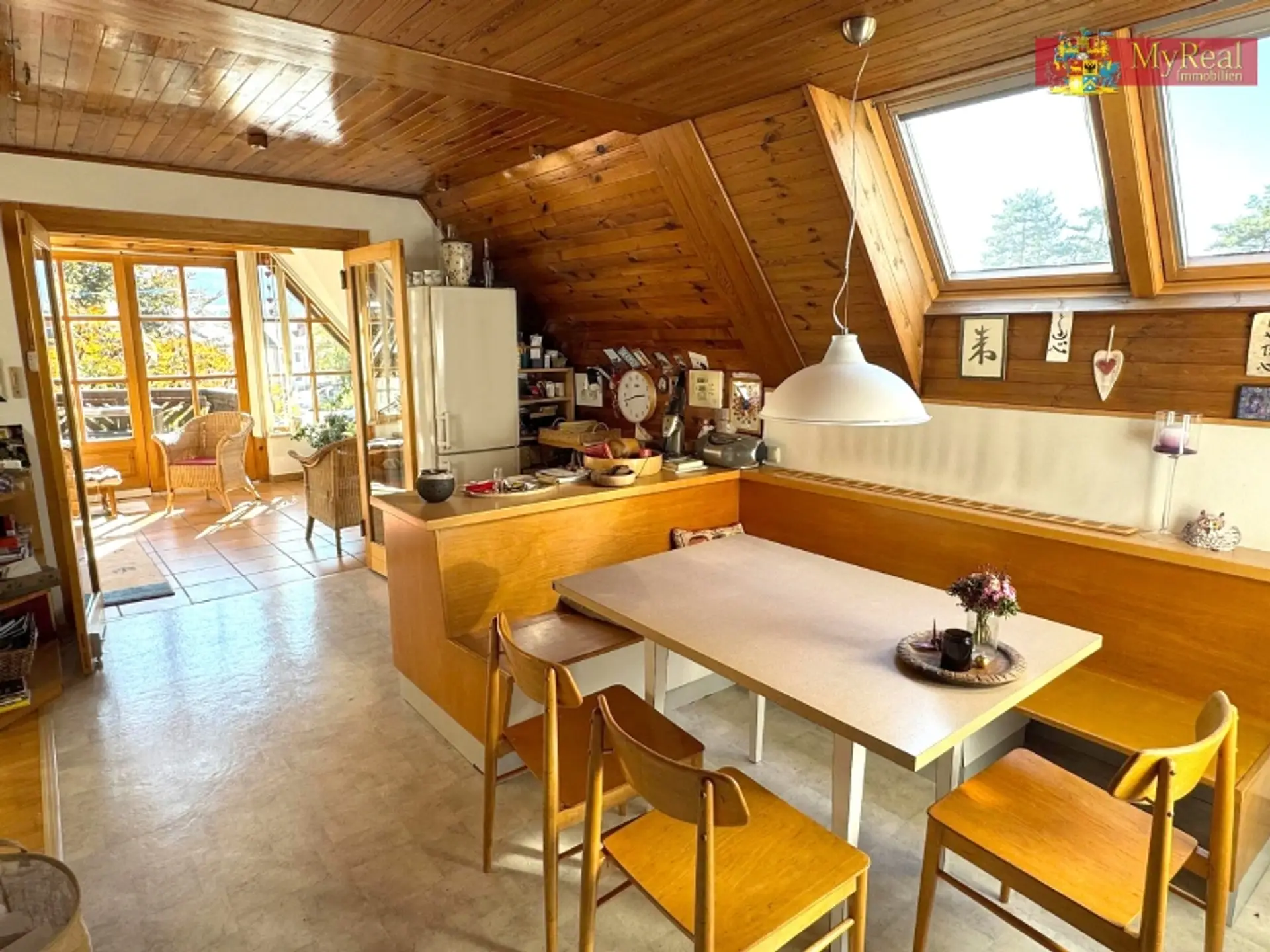 Besonderes Highlight ist der großzügige Wintergarten, der durch seine Architektur und Helligkeit besticht – ein Raum, in dem die Jahreszeiten zum Erlebnis werden. Von hier aus gelangt man auf den Balkon, der einen herrlichen Blick in die umliegende Natur bietet.