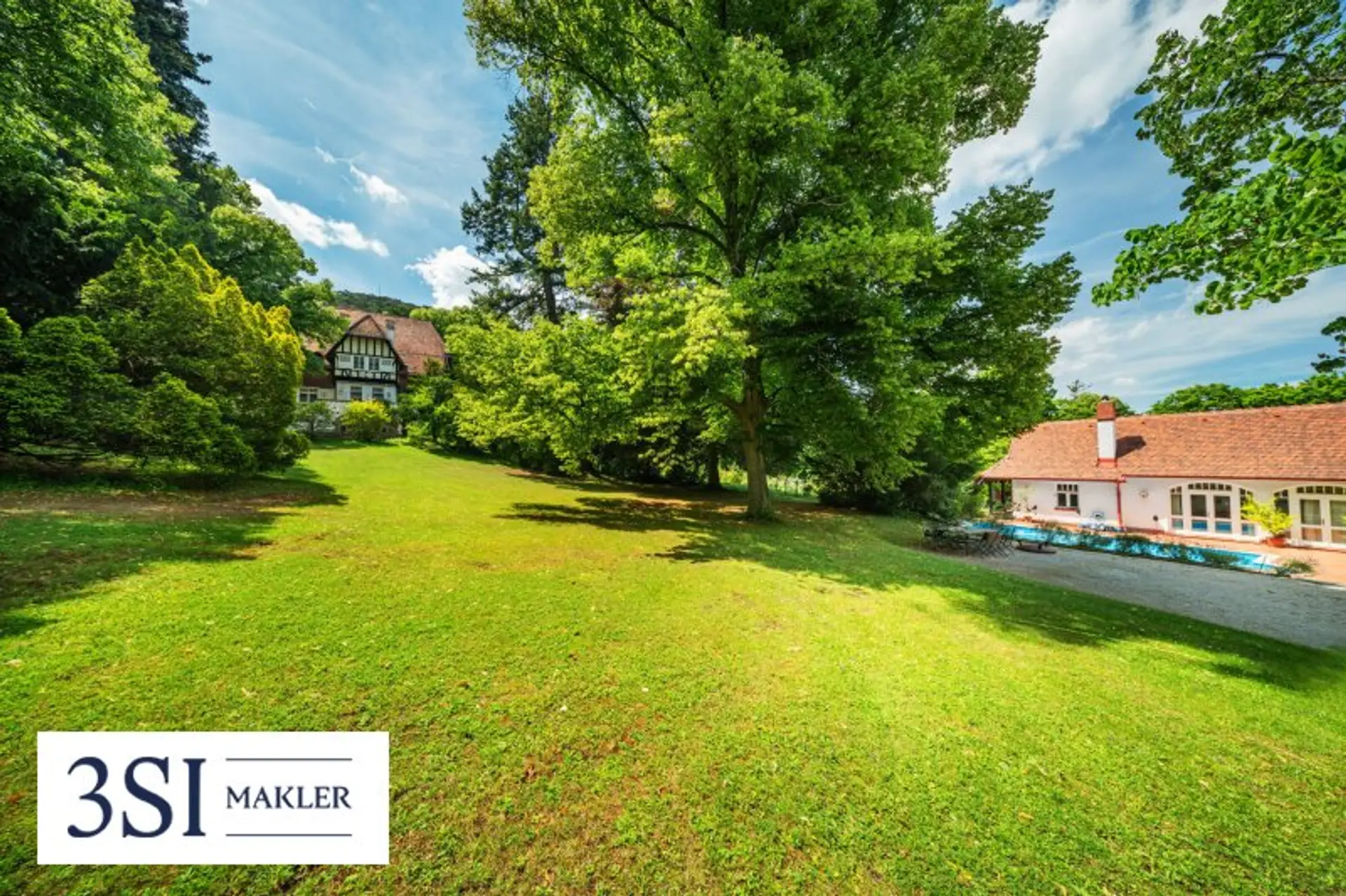 Auf dem über 11.500 m² großen Grundstück befinden sich derzeit ein Haupthaus – entworfen von Prof. Max Baron Ferstel – sowie eine Gärtnervilla mit Pool. Ergänzt wird das Anwesen durch einen separaten Baugrund, der zusätzliches Entwicklungspotenzial bietet.