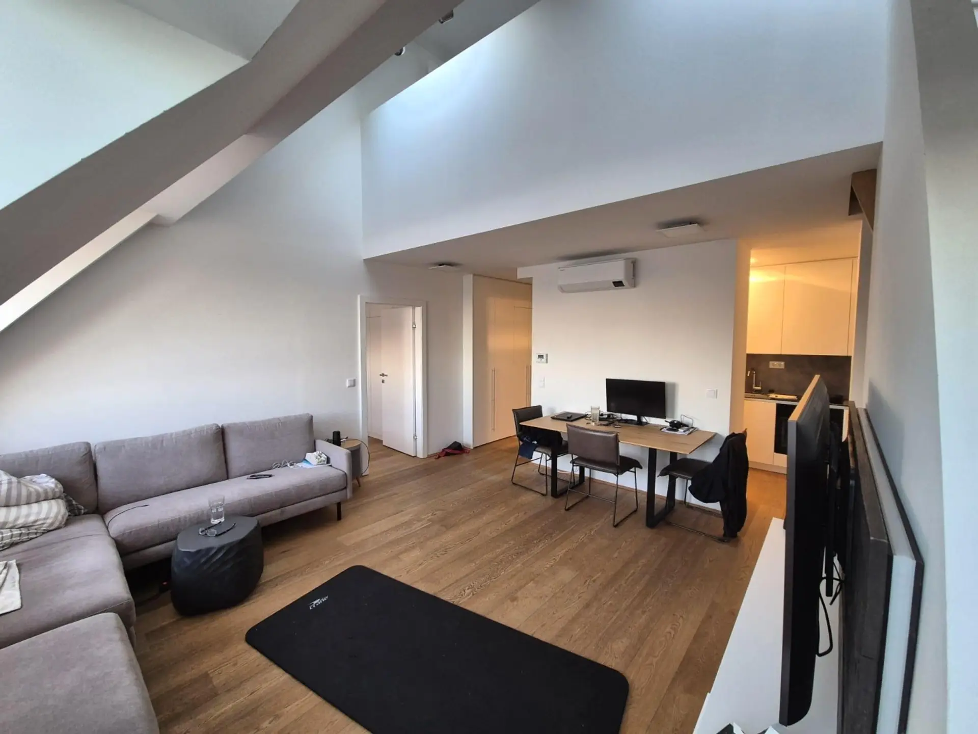 This beautiful maisonette apartment is located in a newly constructed attic extension of a charming historic building. The building has been comprehensively renovated and equipped with a modern elevator, providing comfortable access up to the attic level.