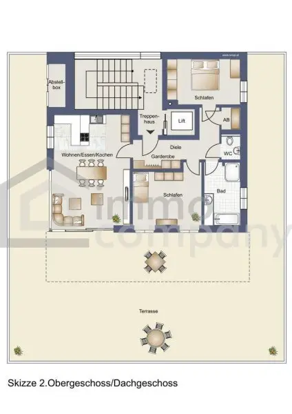 Das Highlight der Wohnung ist die 188,52 m² große Terrasse (39,04 m² überdacht), die Ihnen nicht nur einen Platz im Freien bietet, sondern auch einen spektakulären Ausblick auf die umliegenden Berge. Hier können Sie den Tag mit einem Frühstück im Freien beginnen oder abends bei einem Glas Wein entspannen und den Sonnenuntergang genießen.