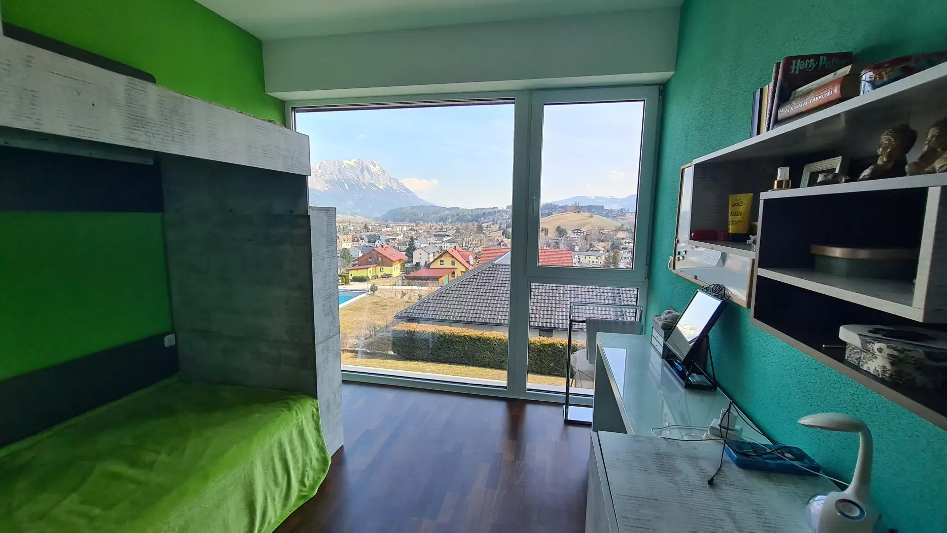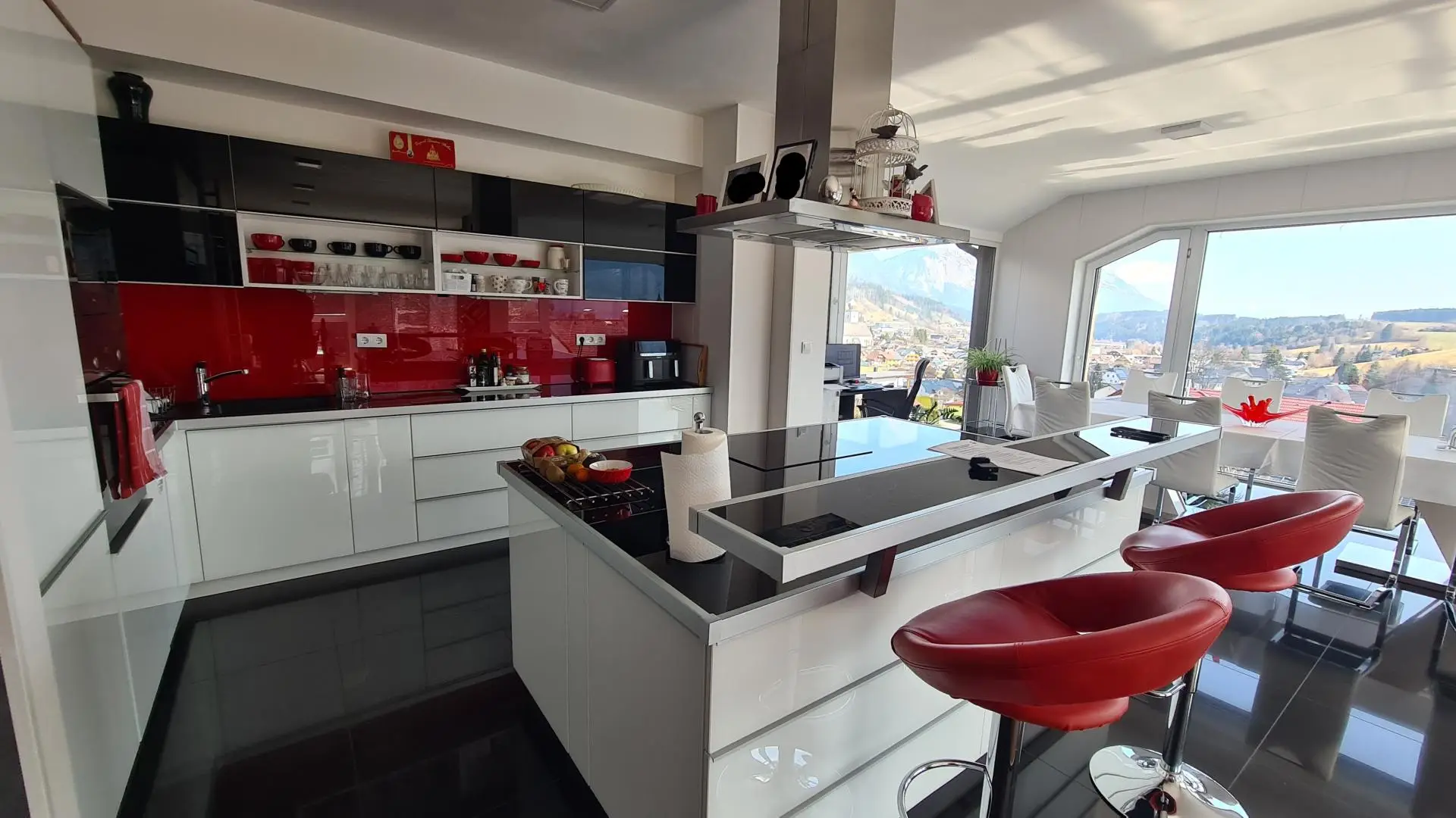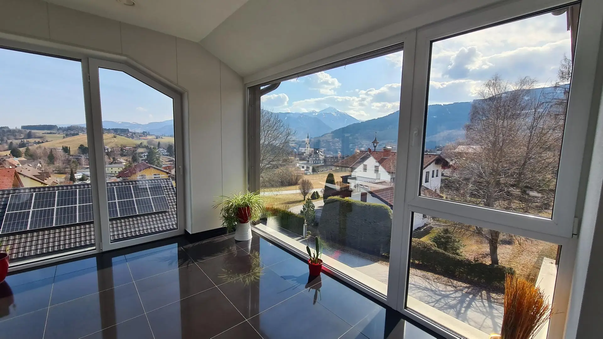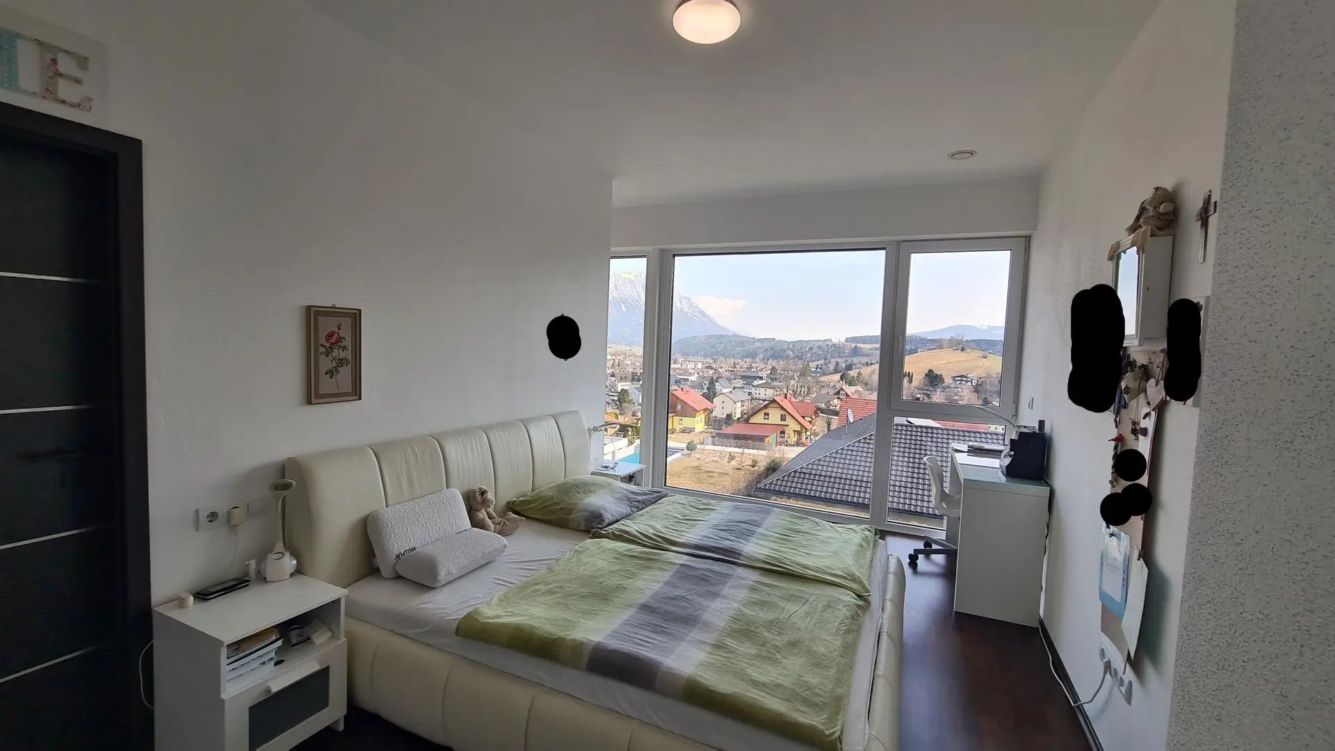 Bereits beim Betreten der Wohnung wird der offene und lichtdurchflutete Charakter spürbar. Der großzügige Wohn- und Essbereich bildet das Herzstück der Immobilie. Große Fensterflächen sorgen nicht nur für eine angenehme Helligkeit im gesamten Wohnraum, sondern eröffnen auch einen spektakulären 180-Grad-Panoramablick über Gröbming und die umliegende Landschaft. Die Kombination aus moderner Architektur und dieser einzigartigen Aussicht schafft eine besondere Wohnatmosphäre.