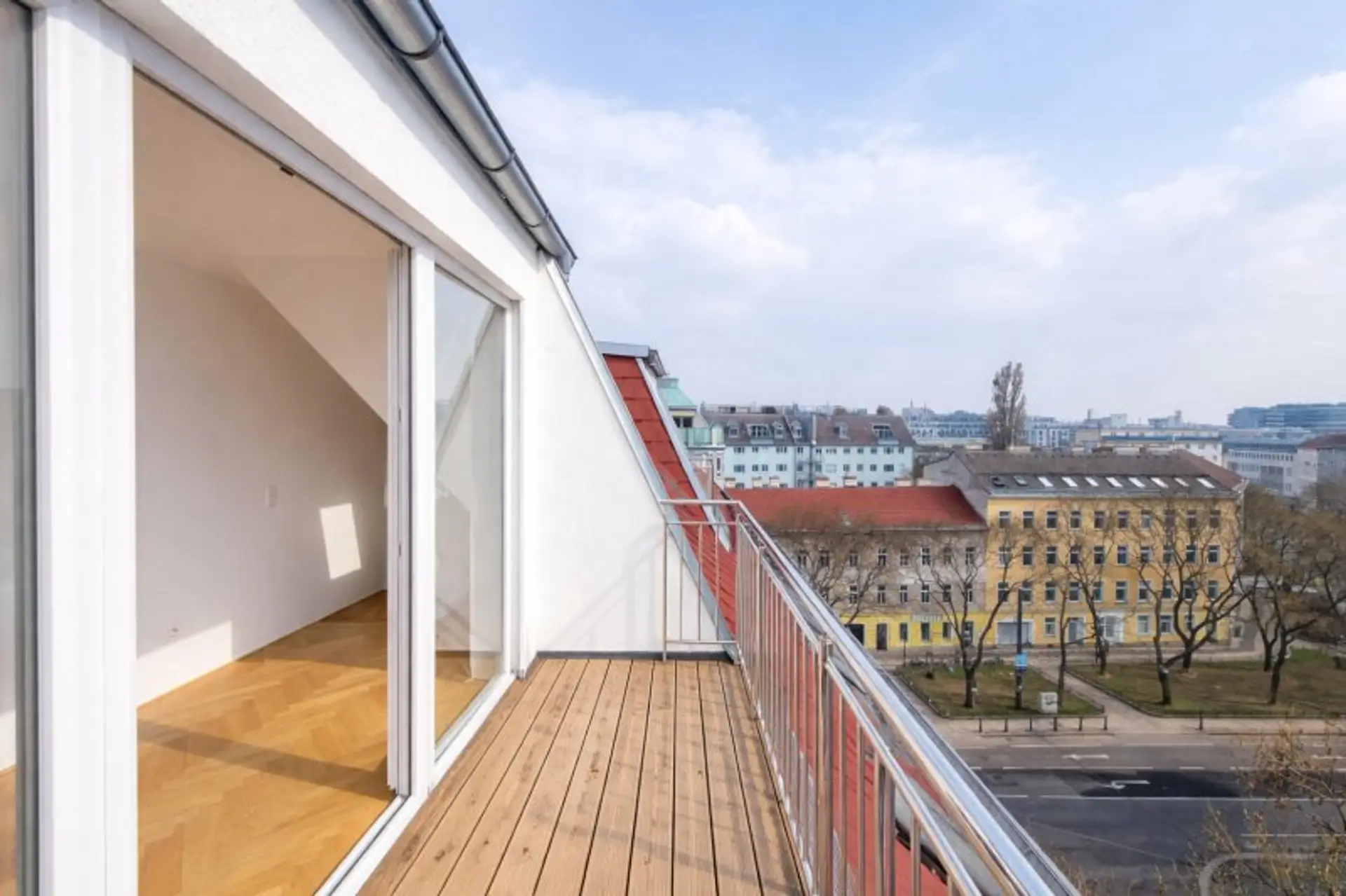 Großzügige Freiflächen laden zum Entspannen ein und bieten einen beeindruckenden Blick über die Dächer Wiens – eine perfekte Verbindung aus urbanem Lebensgefühl und privatem Rückzugsort.