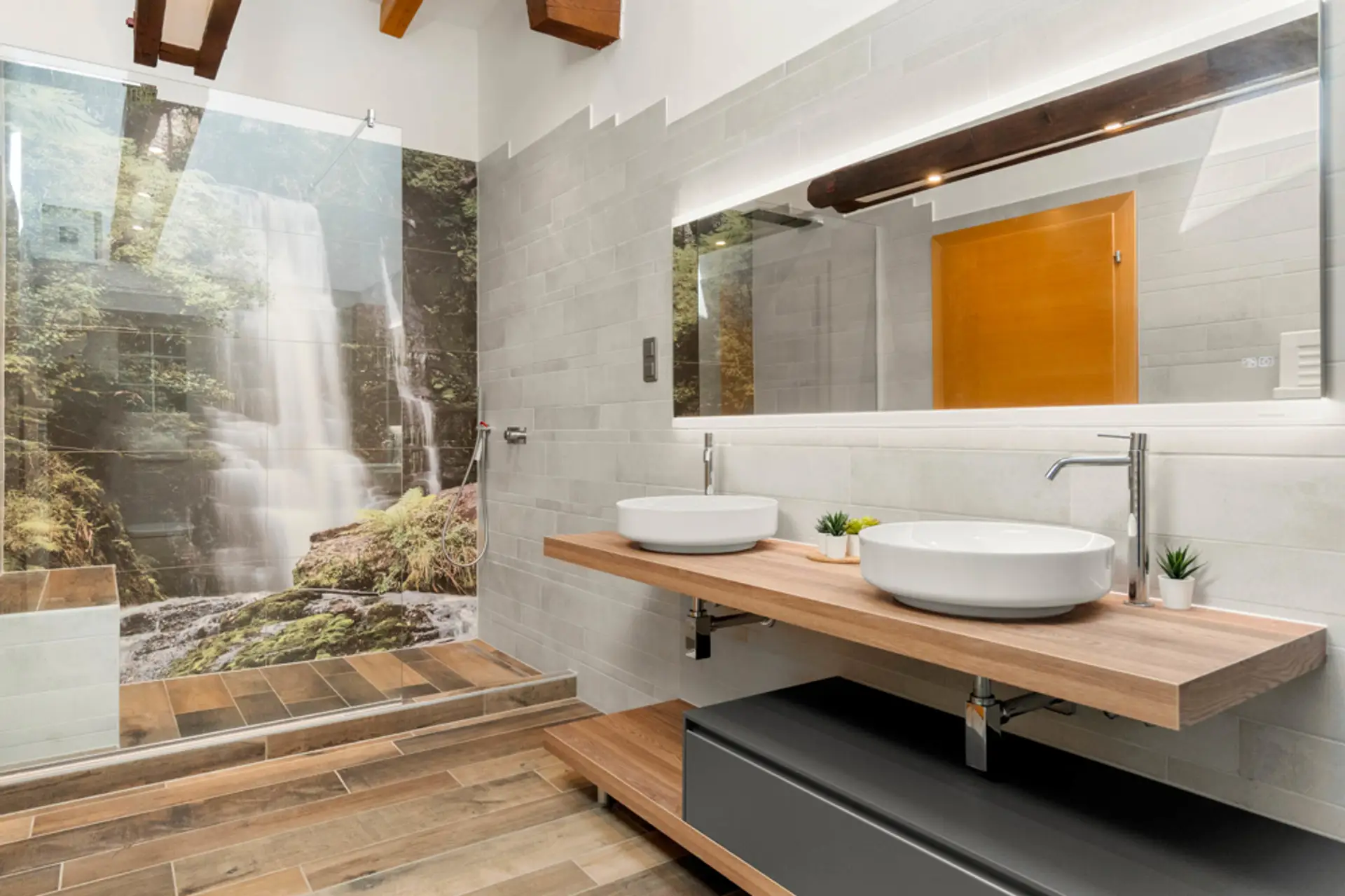 zwei großzügige Vorräume, drei Schlafzimmer, ein Schrankraum, ein offener Wohnraum mit integrierter Küche, Essecke und Zugang auf die Galerie, ein Badezimmer, eine Besuchertoilette und ein extra Waschraum, zwei zum Teil überdachte Terrassen: Nord-/Ost-Terrasse mit ca. 23,09 m² und Nord-/West-Terrasse mit ca. 31,23 m²