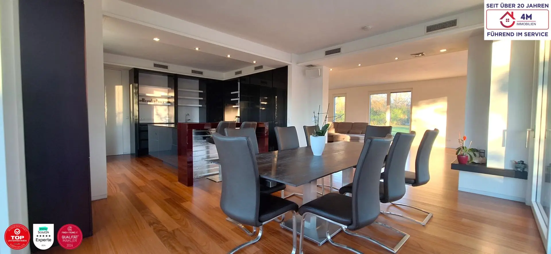 Auf ca. 454 m² Wohnnutzfläche überzeugt die Immobilie mit offenem Wohnkonzept, hochwertigsten Materialien und einem außergewöhnlichen Ausstattungsniveau.