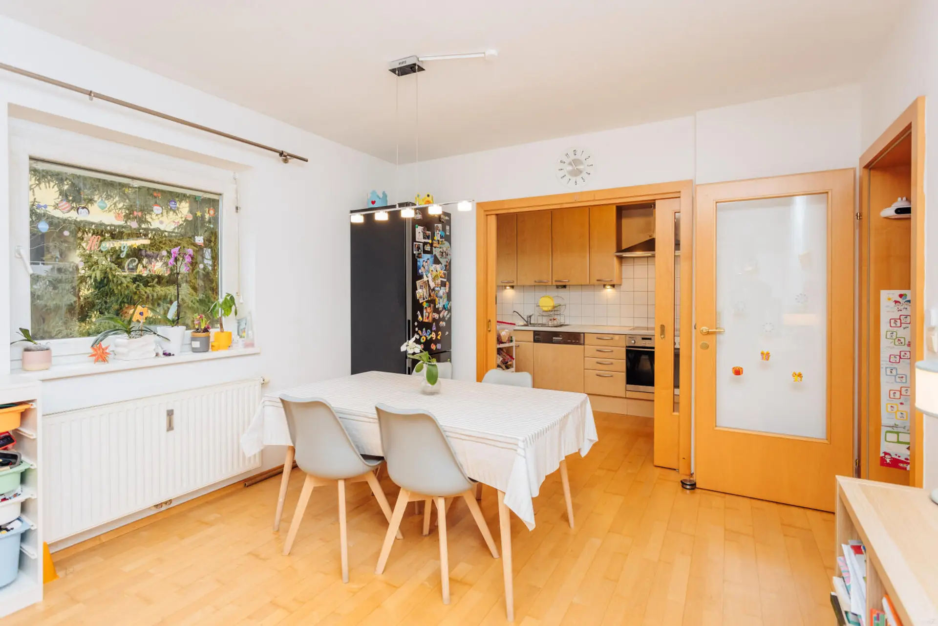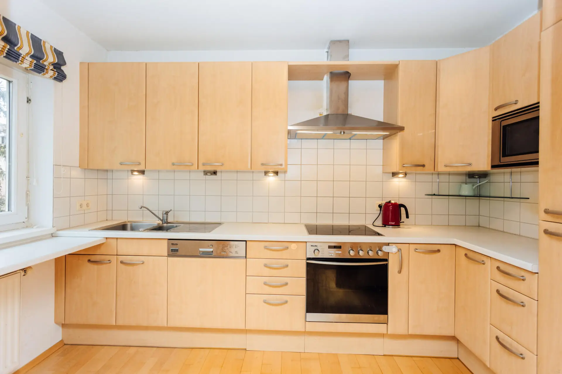 Die Küche ist exklusiv mit Miele-Markengeräten ausgestattet. Das Badezimmer bietet Dusche und Badewanne, ergänzt durch ein separates WC. Weitere Komfortmerkmale wie Kellerabteil, Garage und zusätzlicher Stellplatz unterstreichen den Premium-Charakter dieser Immobilie.