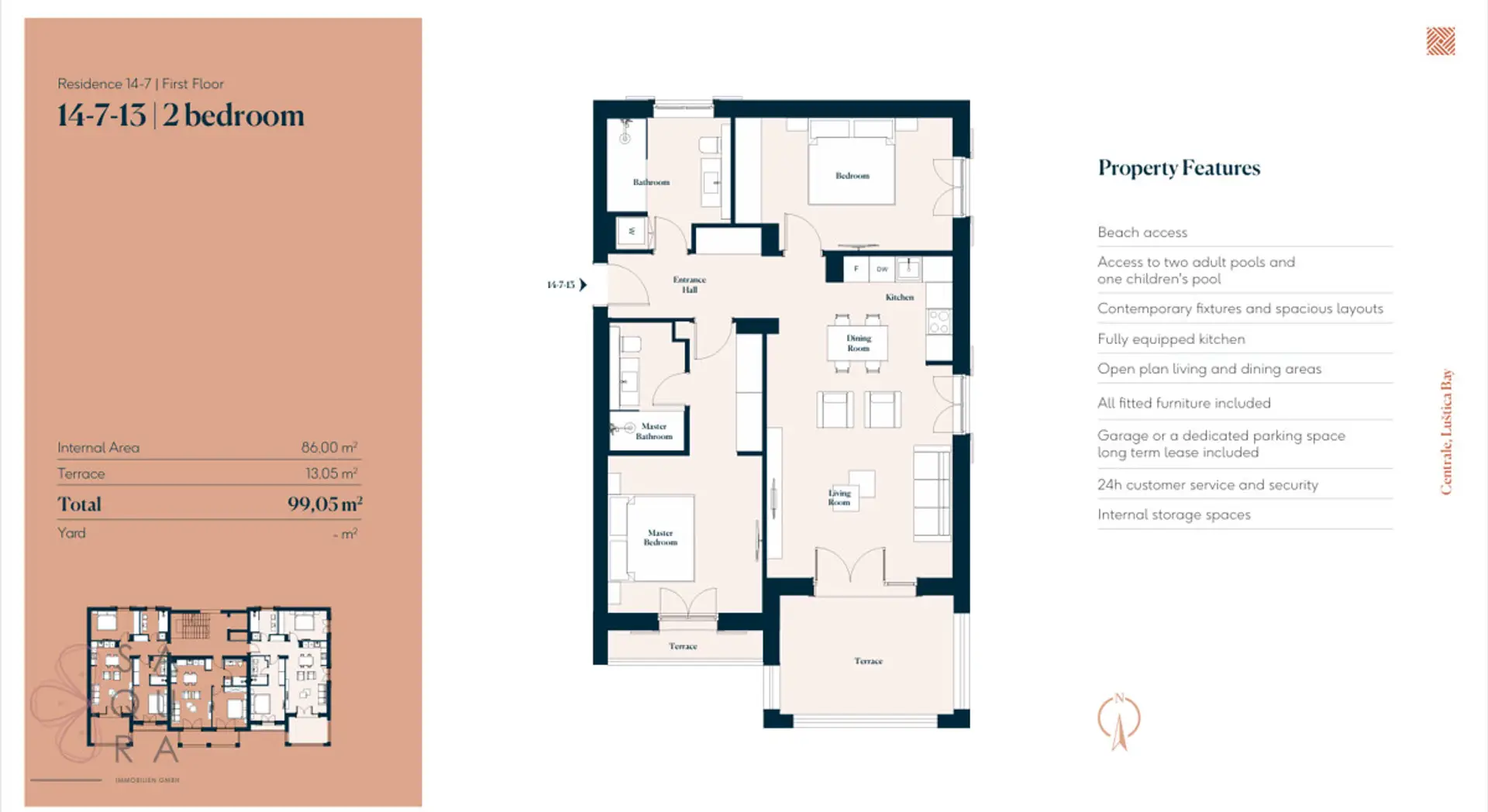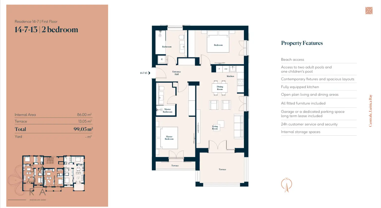 Centrale is set to become the urban fabric and the beating heart of Luštica Bay. With residential buildings already emerging, alongside a school, bank, fire service, and more in the works, it is the perfect place for families and professionals looking for an ideal second home or vacation residence. It is complemented by entirely modern infrastructure and intelligent design connected to the natural environment. The neighborhood combines residential and commercial zones with a range of public spaces, designed to respond to the landscape’s features to maximize outdoor living and vibrant community life. With atmospheric streets and a Piazza, a showpiece square bursting with shops, cafes, galleries, and restaurants, Centrale is designed to offer lively, non-stop energy every day, all year round.