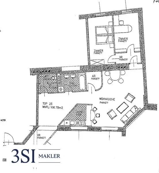 Mit einer Wohnfläche von ca. 106,78 m² vereint diese Immobilie urbanen Lifestyle mit höchstem Wohnkomfort. Die lichtdurchflutete Wohnküche bildet das stilvolle Herzstück der Wohnung und bietet ein elegantes Ambiente für anspruchsvolles Wohnen und gesellige Stunden.