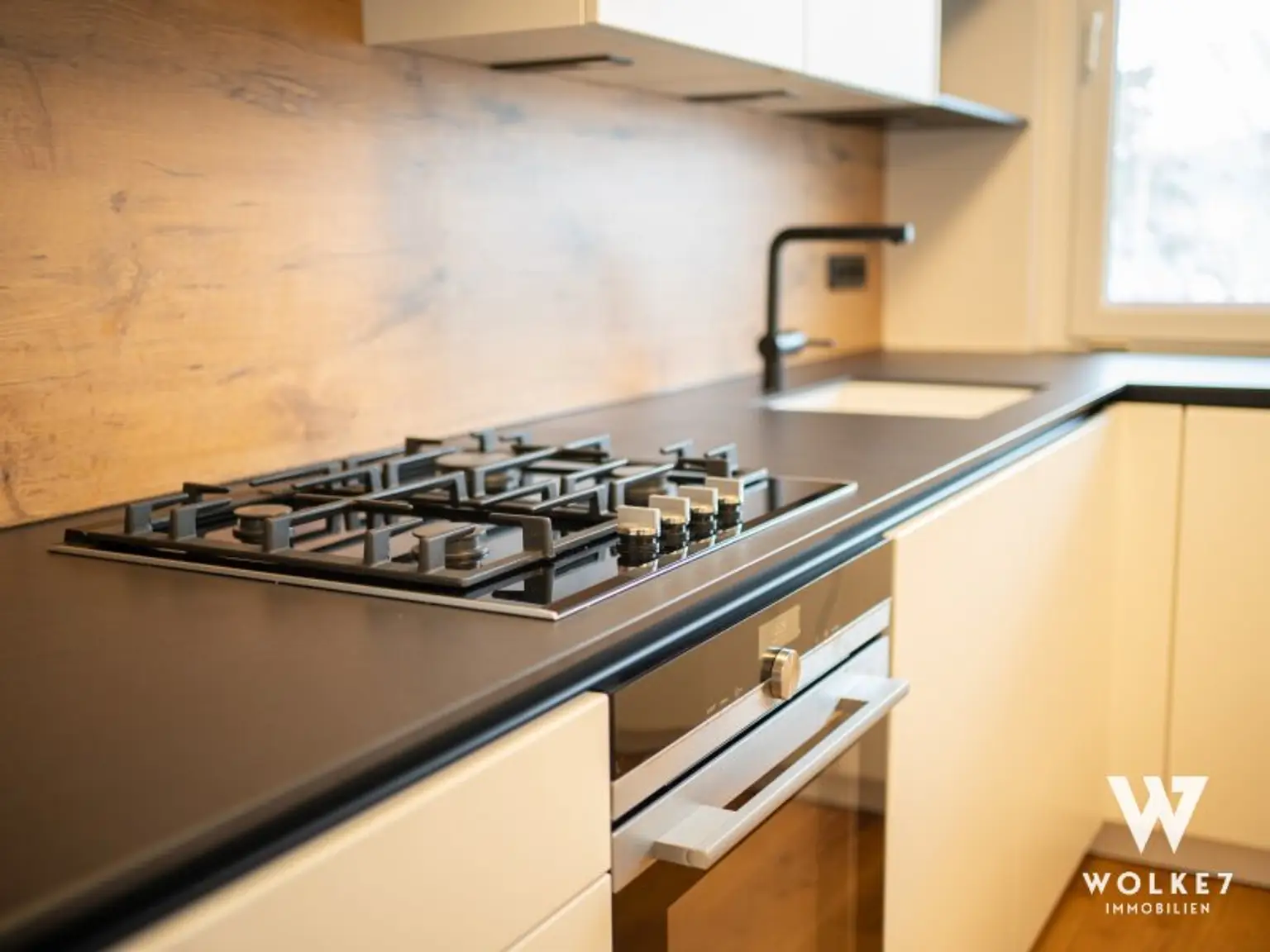 Herzstück ist der großzügige, lichtdurchflutete Wohn-/Essbereich mit großen Fensterflächen entlang der gesamten Südfront und direktem Zugang zur Terrasse. Die hochwertige DAN-Maßküche (Einbau Sommer 2025) mit Keramikarbeitsplatte und Markengeräten fügt sich elegant in den Wohnraum ein.