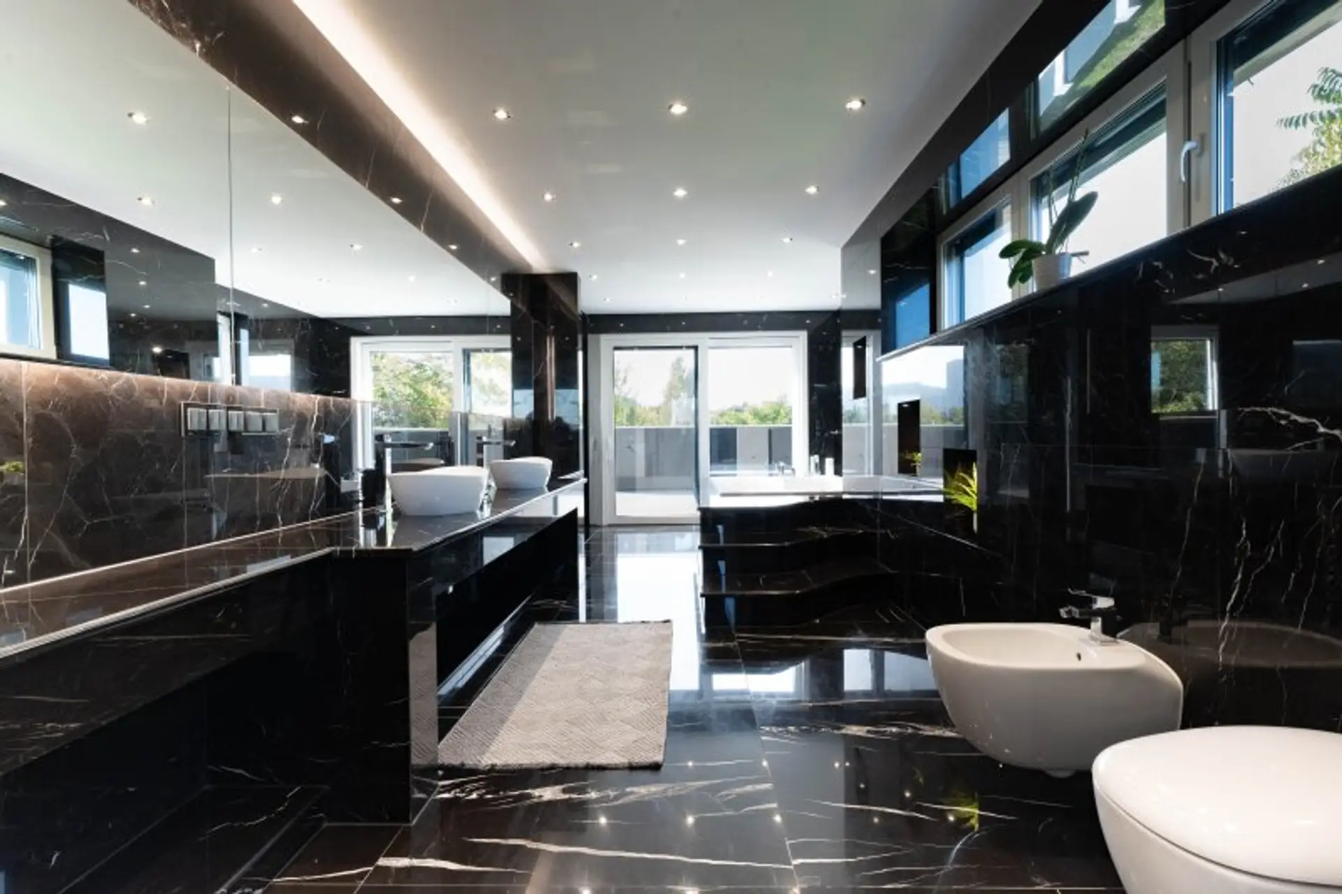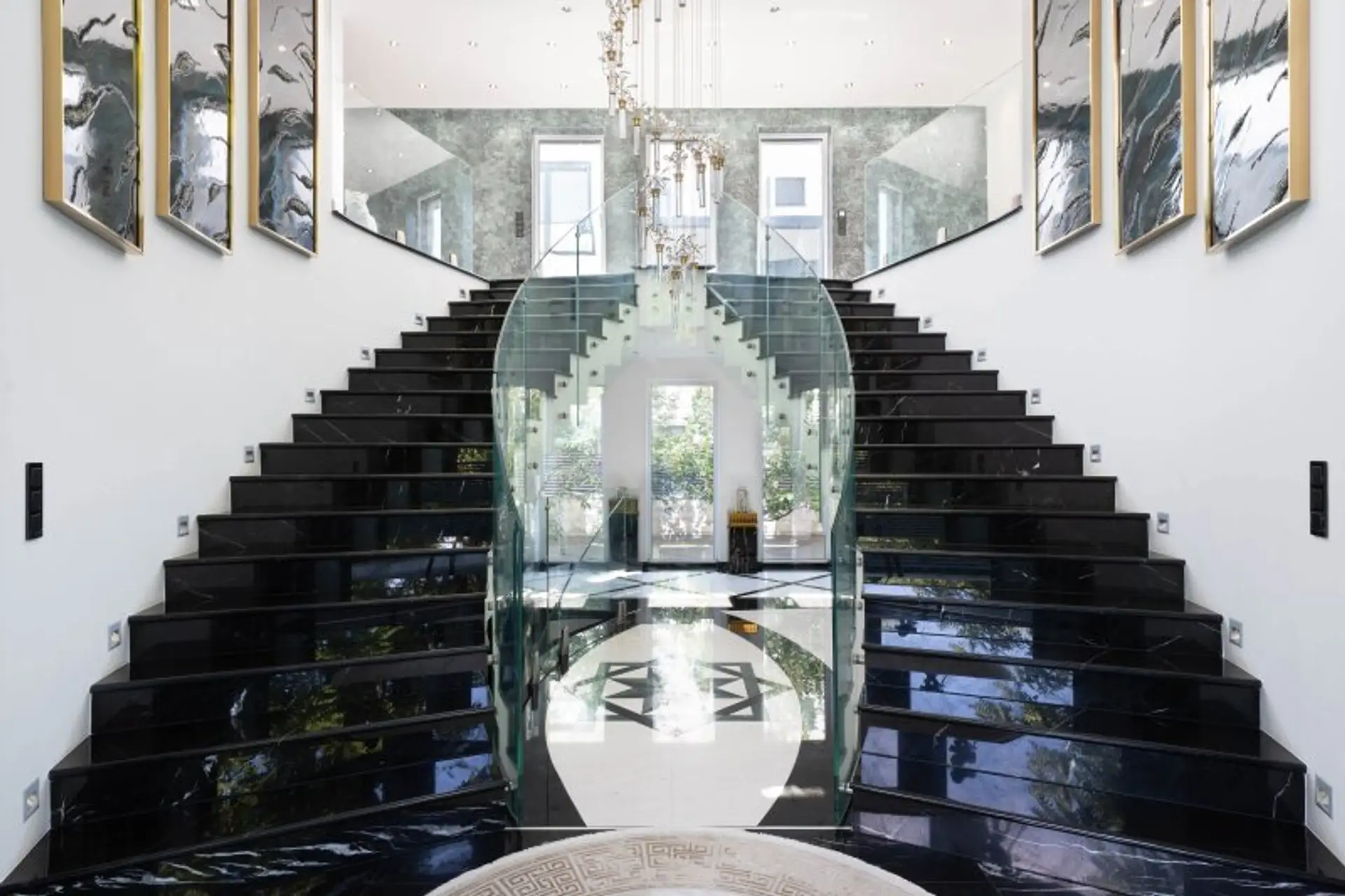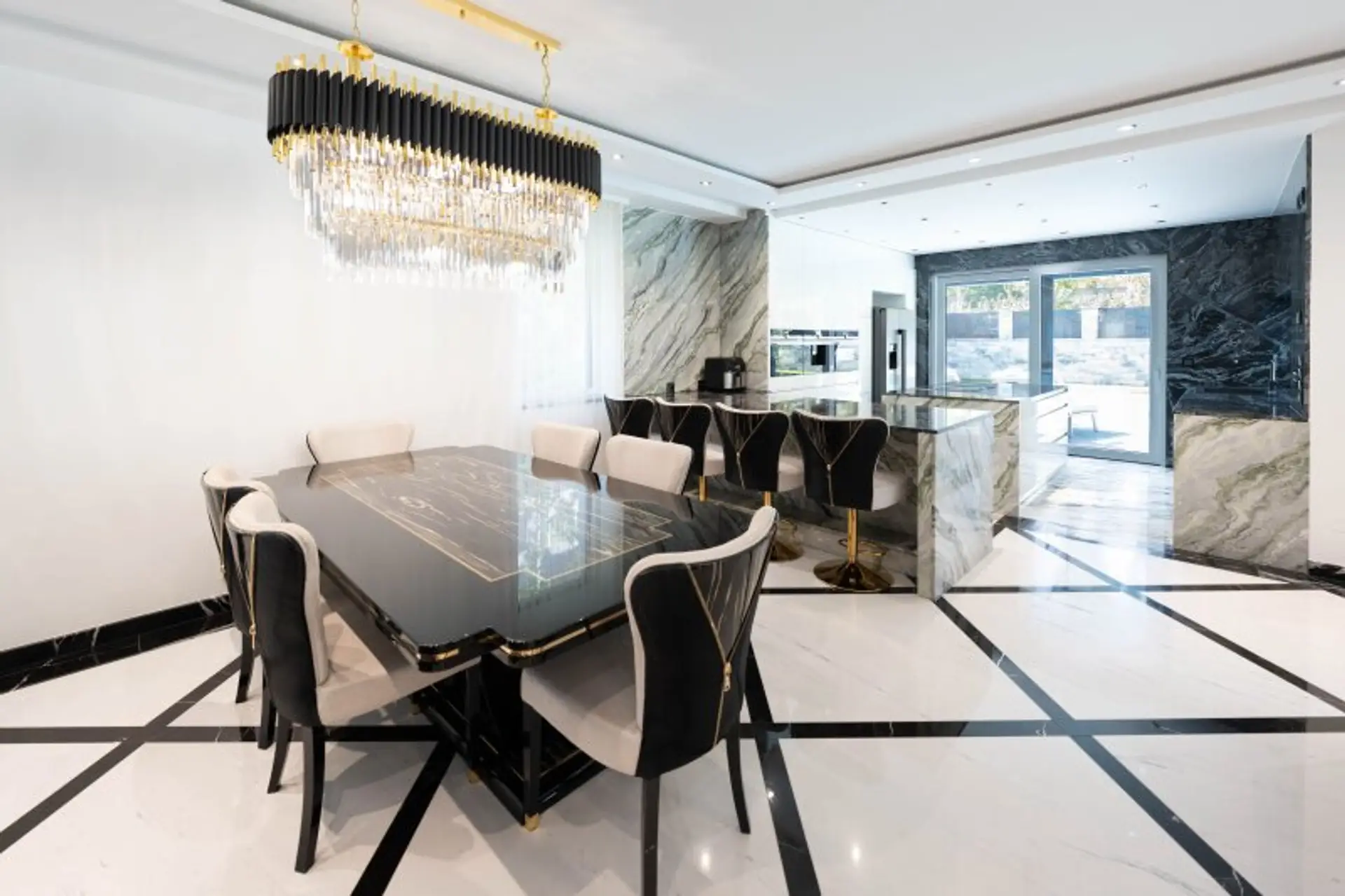 Die Ausstattung des Hauses lässt keine Wünsche offen. Naturstein- und Marmorböden schaffen ein harmonisches Gesamtbild. Das durchdachte Beleuchtungskonzept sowie hochwertige Armaturen in den Bädern unterstreichen den modernen Charakter der Villa. Große Glasfronten, helle Räume und eine elegante Linienführung verleihen dem Haus Leichtigkeit und Offenheit.