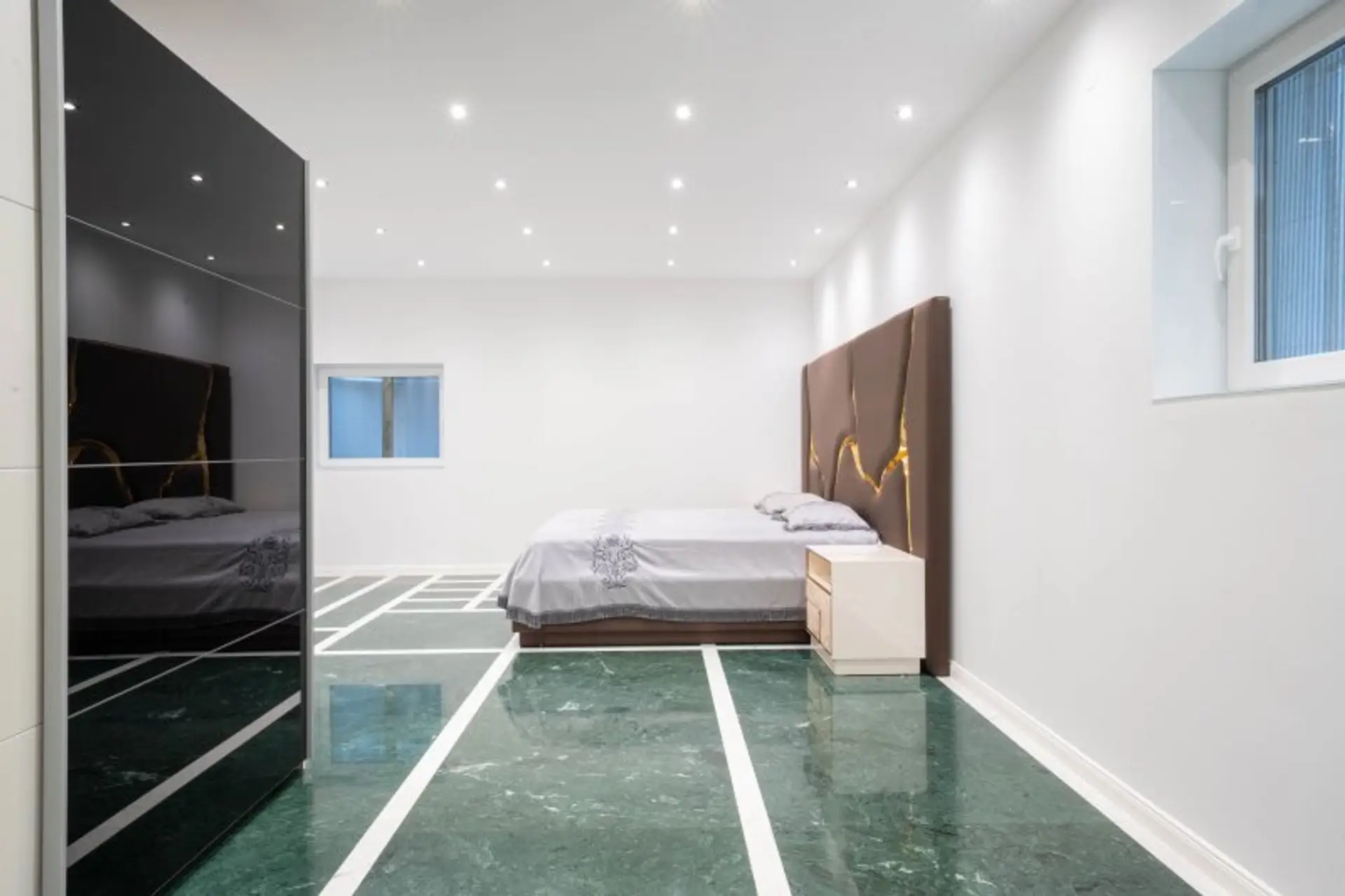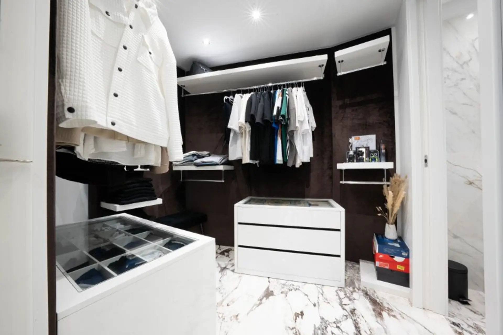 Im Obergeschoss setzt sich das luxuriöse Wohngefühl fort. Zwei helle, großzügige Schlafzimmer bieten ausreichend Platz und verfügen über ein Badezimmer mit exklusivem Marmorfinish, sowie begehbare Kleiderschränke. Der breite Gang verbindet die privaten Räume harmonisch und schafft eine elegante Galerie-Atmosphäre.