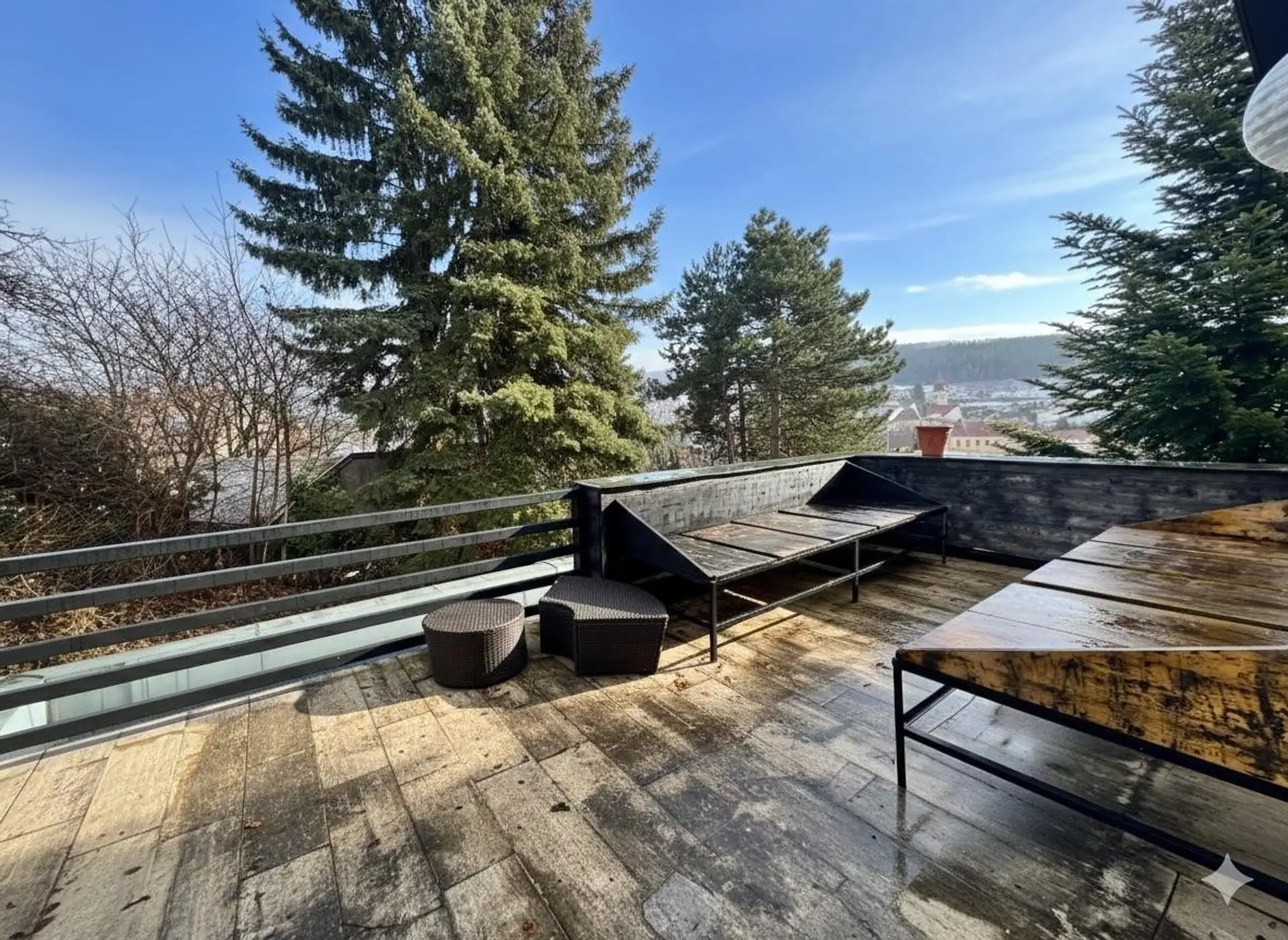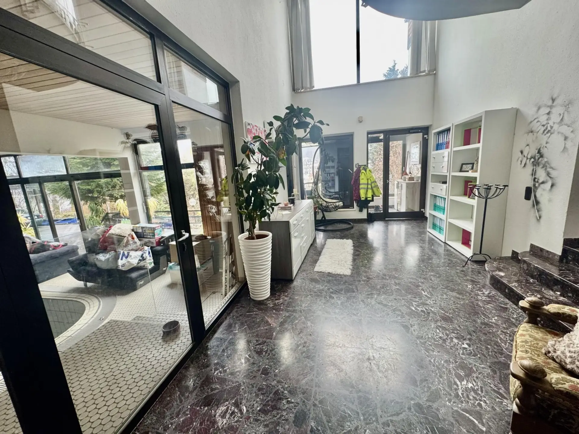 Dieses großzügige Wohnhaus besticht durch seine ruhige Hanglage mit Süd- bis Südwest-Ausrichtung und einen beeindruckenden Blick auf die Berge.