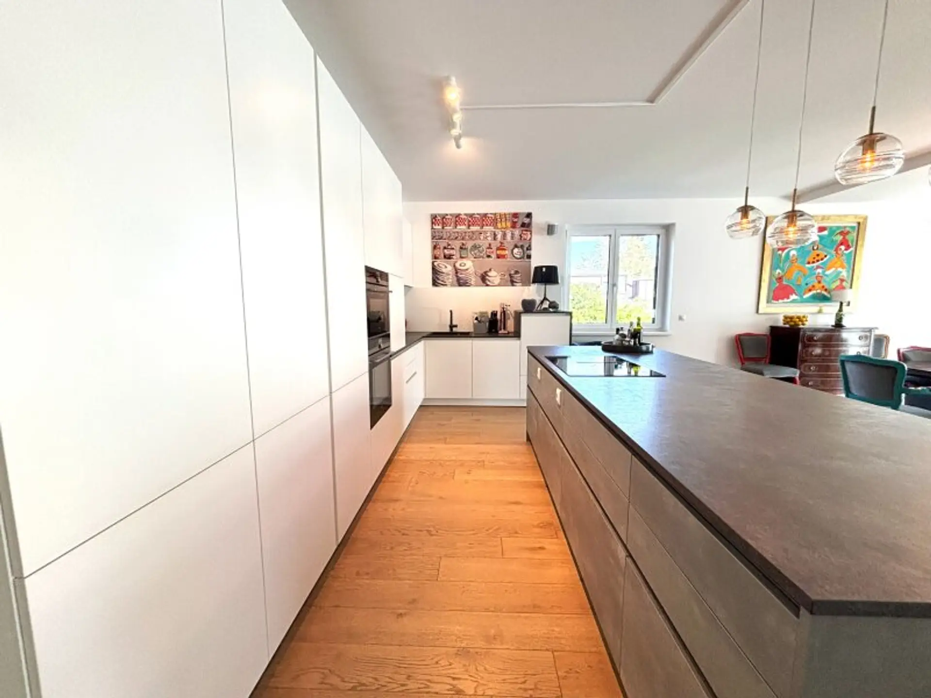 * Offene Wohnküche mit ca. 79,18 m², ausgestattet mit einer exklusiven Designerküche und hochwertigen Markengeräten