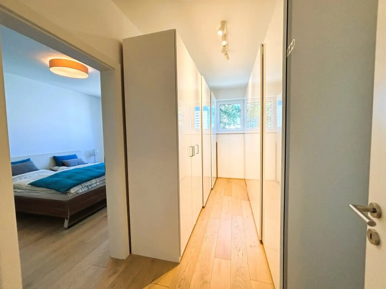 * Master-Schlafzimmer mit Schrankraum und direktem Zugang zum großzügigen Badezimmer