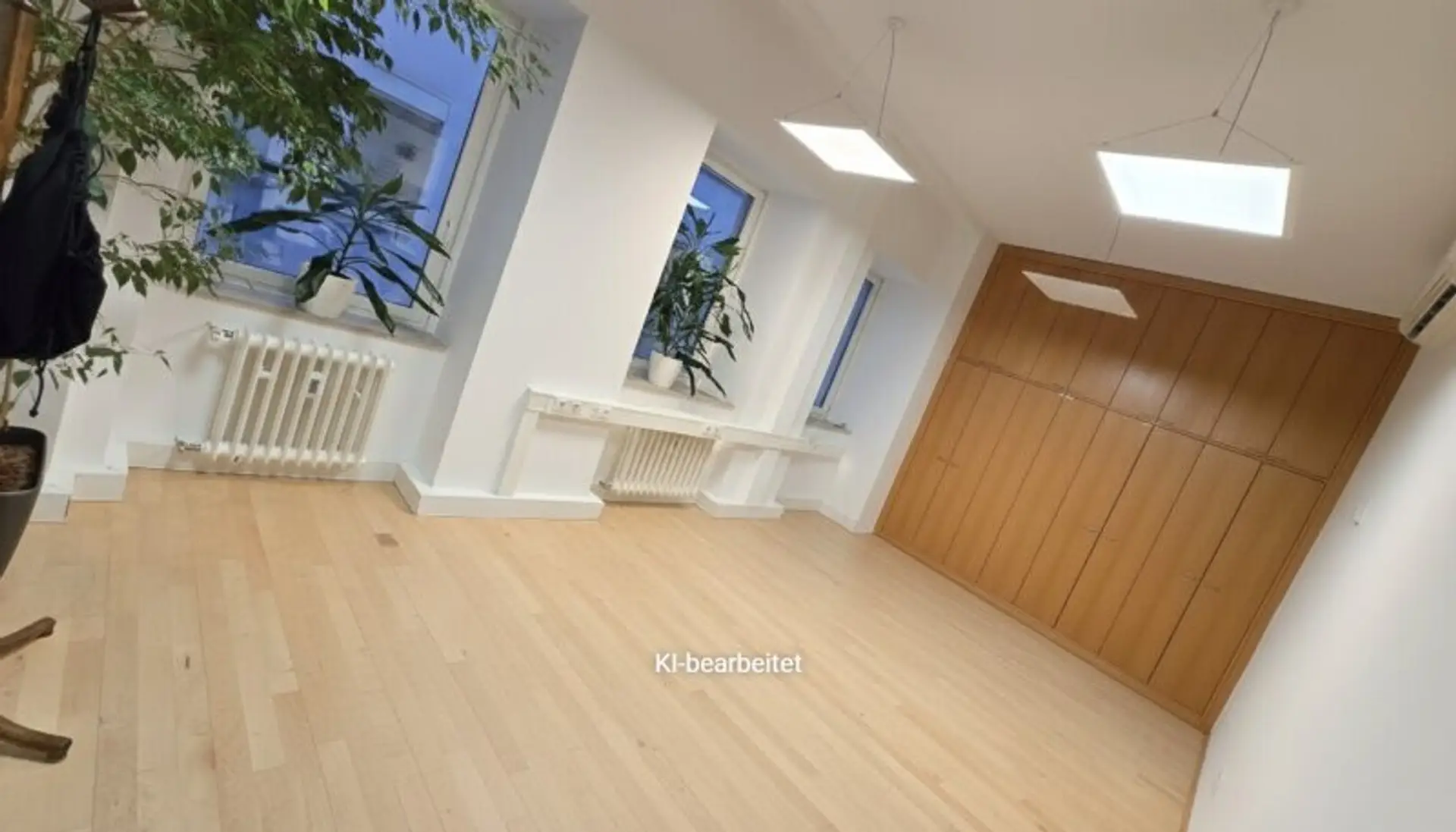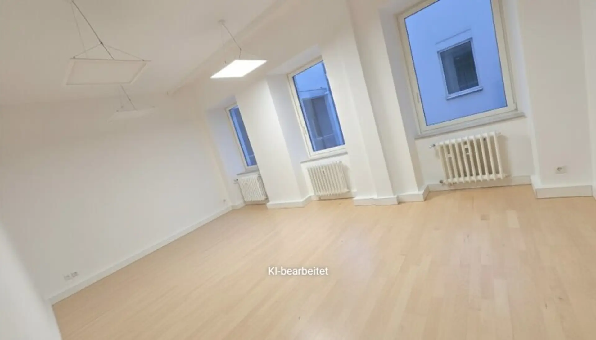 Es handelt sich um einen 23,41 m2 großen Büroraum (unmöbliert - aktuelle Möbel wurde durch KI-Bearbeitung entfernt) im Verband eines bestehenden Büros.
