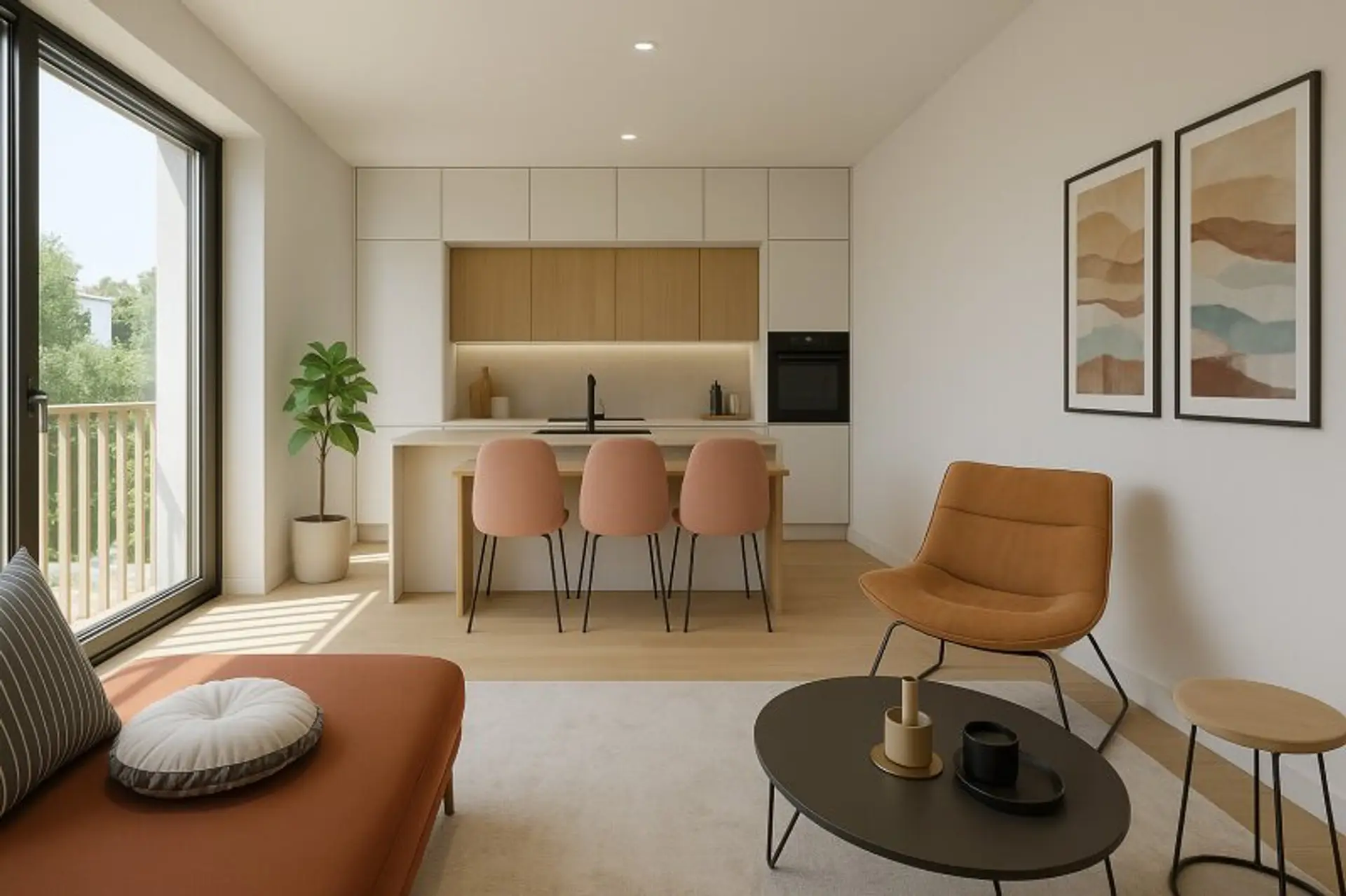 Diese hochwertig geplante 2-Zimmer-Dachgeschoßwohnung beeindruckt durch klare Linien, helle Räume und zwei attraktive Freiflächen. Auf rund 50 m² Wohnfläche bietet sie einen offenen Wohn- und Essbereich mit integrierter Küche sowie eine Terrasse und einen Balkon, jeweils mit etwa 5 m². Dadurch entstehen zwei wertvolle Außenbereiche – ideal für Frühstück an der frischen Luft oder entspannte Abendstunden.