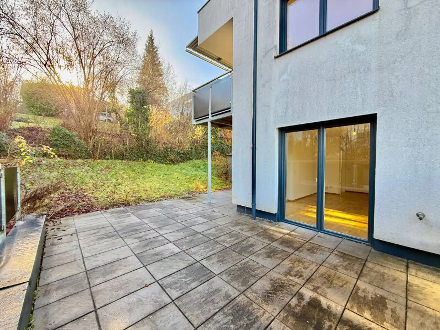 Ein absolutes Highlight: Die über 30 m² große Terrasse bietet viel Platz für Sonnenliegen, Esstisch, Pflanzen oder eine Lounge – ein echtes Outdoor-Wohnzimmer mit herrlichem Blick ins Grüne.