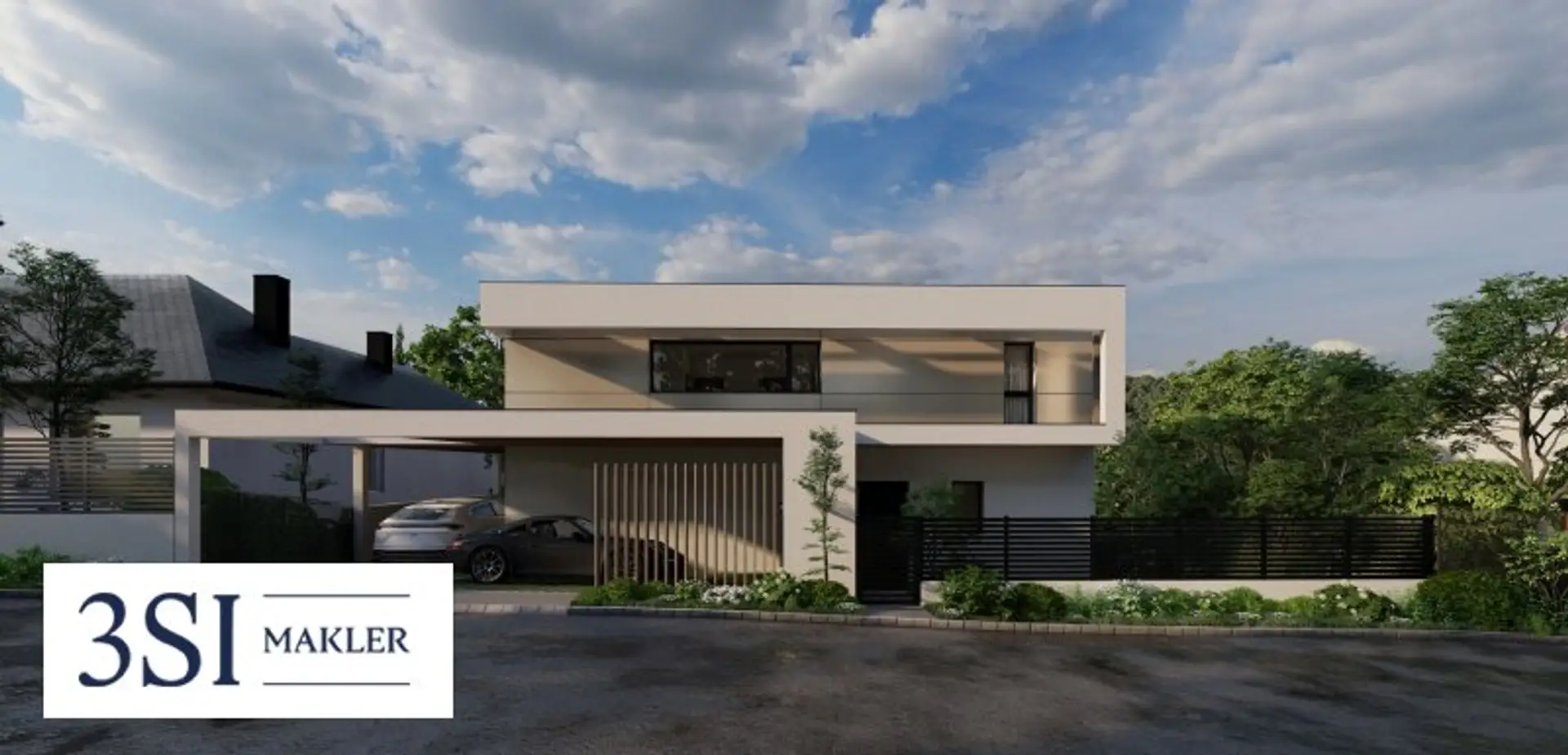 Die Villa überzeugt durch klare Linien und eine hochwertige Bauweise, die Eleganz und Beständigkeit verbindet. Der repräsentative Vorgarten, moderne Pflanzbeete und zwei Autoabstellplätze bilden den stilvollen Auftakt zu dieser besonderen Residenz.