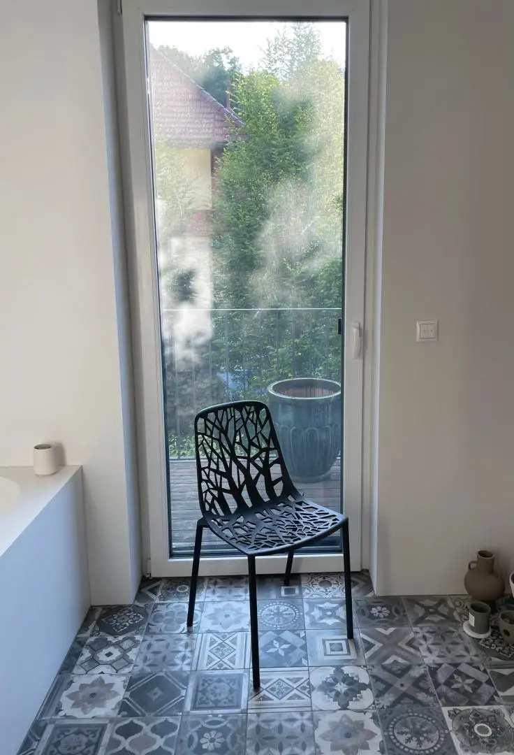 vom Wohnbereich aus gelangt man auf die fast 60m2 große, rundumüberdachten Balkon mit einmaligen Blick in Grüne, bis zur Herz-Jesu Kirche- ABSOLUTE RUHELAGE & UNVERBAUBAR- einmalig in Graz!