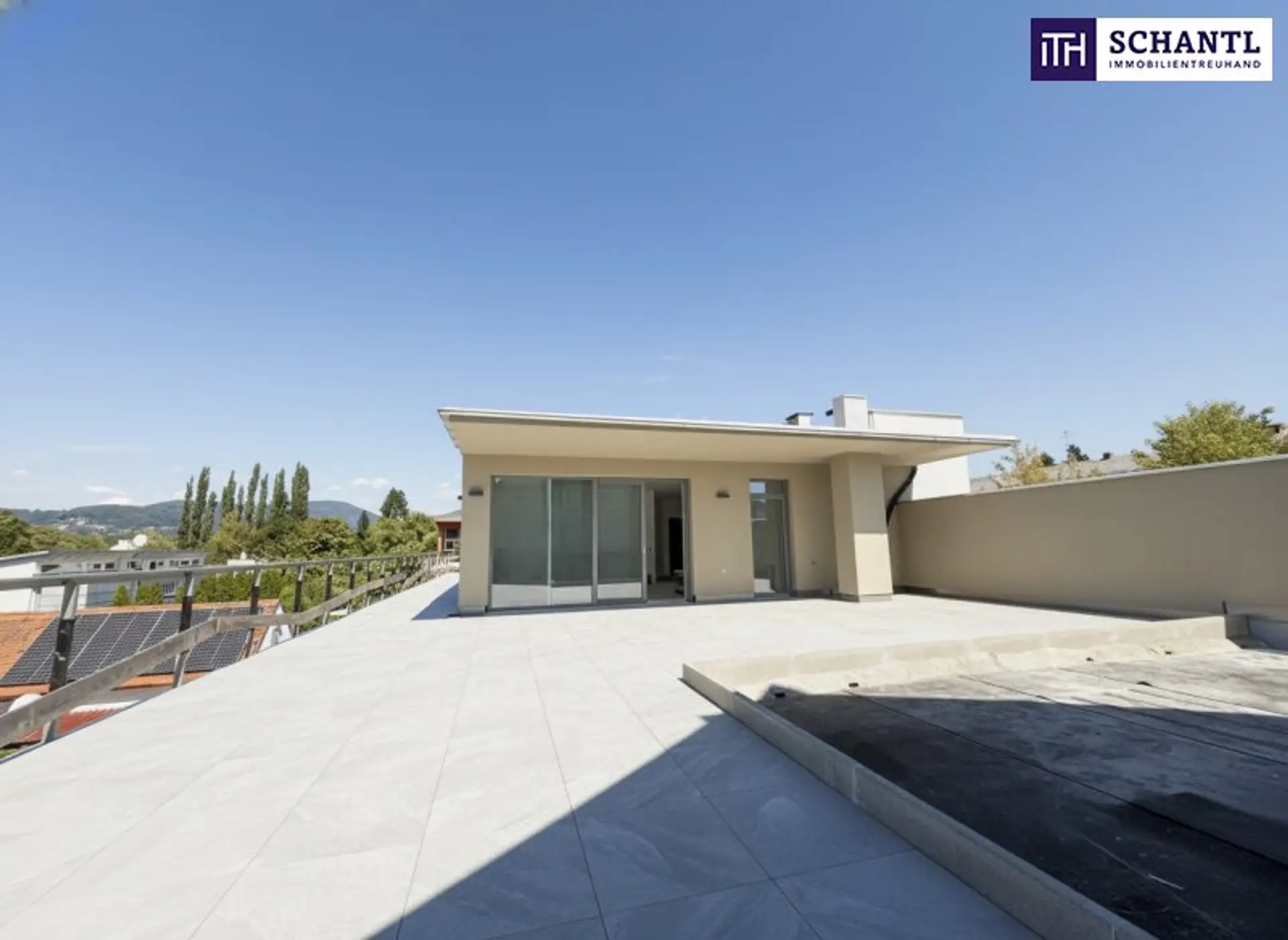 Ein absolutes Highlight dieses Penthouses ist die großzügige Terrasse, die Ihnen einen einzigartigen Blick über die Stadt und ins Grüne bietet. Hier können Sie entspannte Stunden genießen, Sonnenuntergänge beobachten oder gesellige Abende mit Familie und Freunden verbringen.