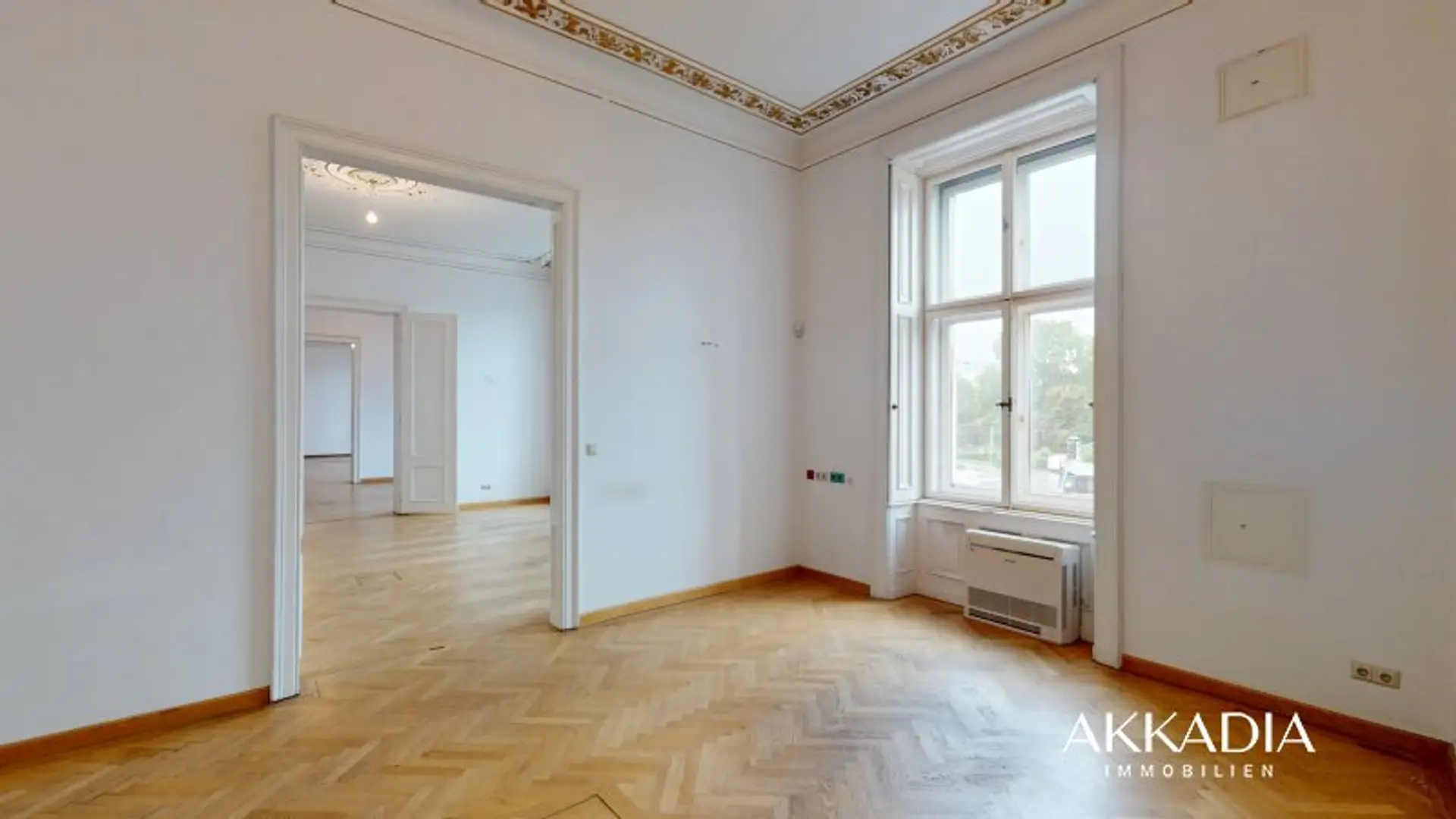 Das Büro befindet sich in zentraler Lage am Karlsplatz 3 im 1. Wiener Gemeindebezirk – einem etablierten und gefragten Geschäftsstandort in unmittelbarer Nähe zu bedeutenden kulturellen Einrichtungen wie der Staatsoper, dem Musikverein sowie der Technischen Universität und der Kunstuniversität. Auch der Stadtpark und der Naschmarkt sind rasch erreichbar.