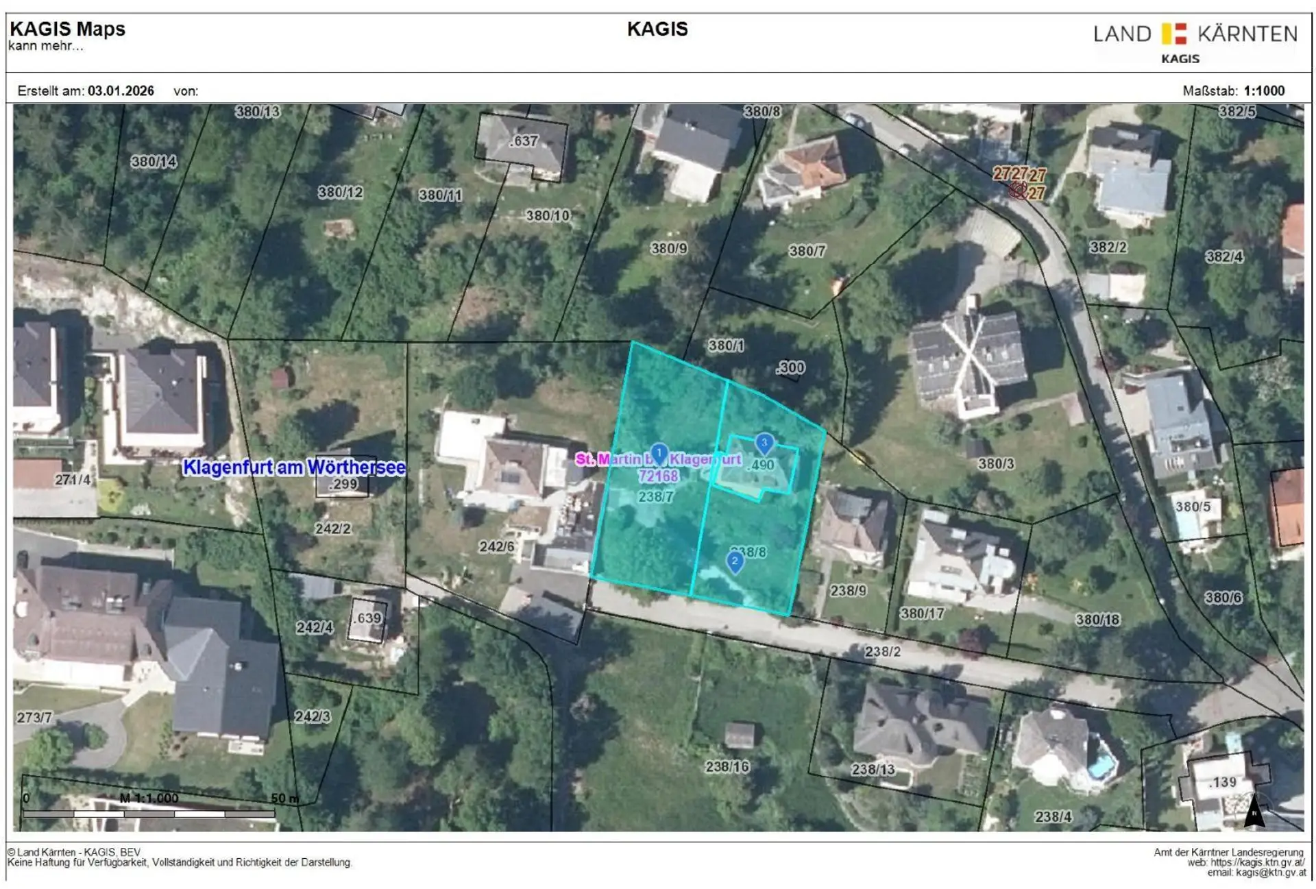 • Gesamtfläche: ca. 1.721 m², aufgeteilt in drei Parzellen