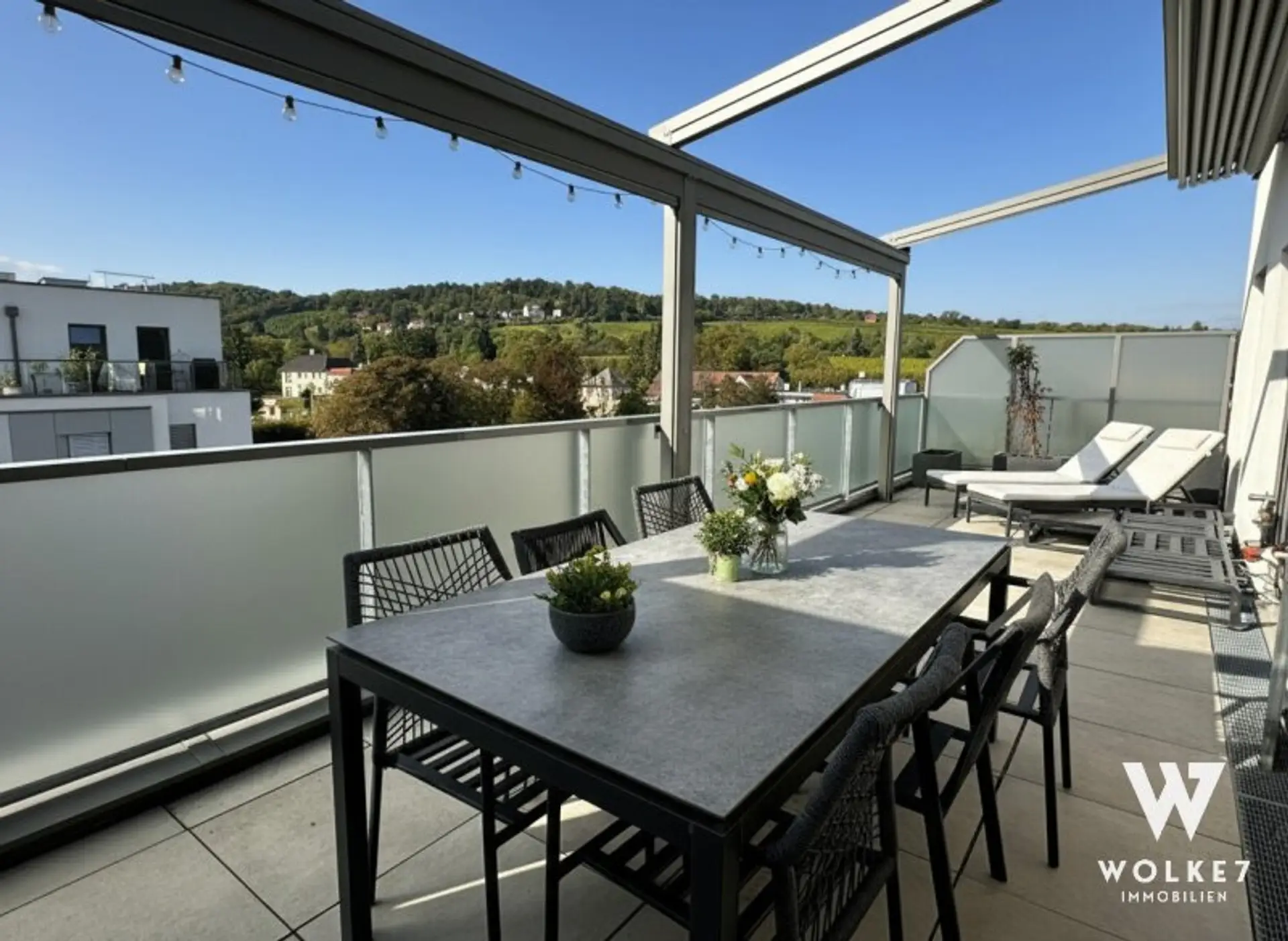 EXKLUSIVES DACHGESCHOSS MIT GRÜNBLICK – KNAPP 100 M² WOHNFLÄCHE, 2 TERRASSEN MIT NEUEN PERGOLEN & HAUSEIGENEM HALLENBAD