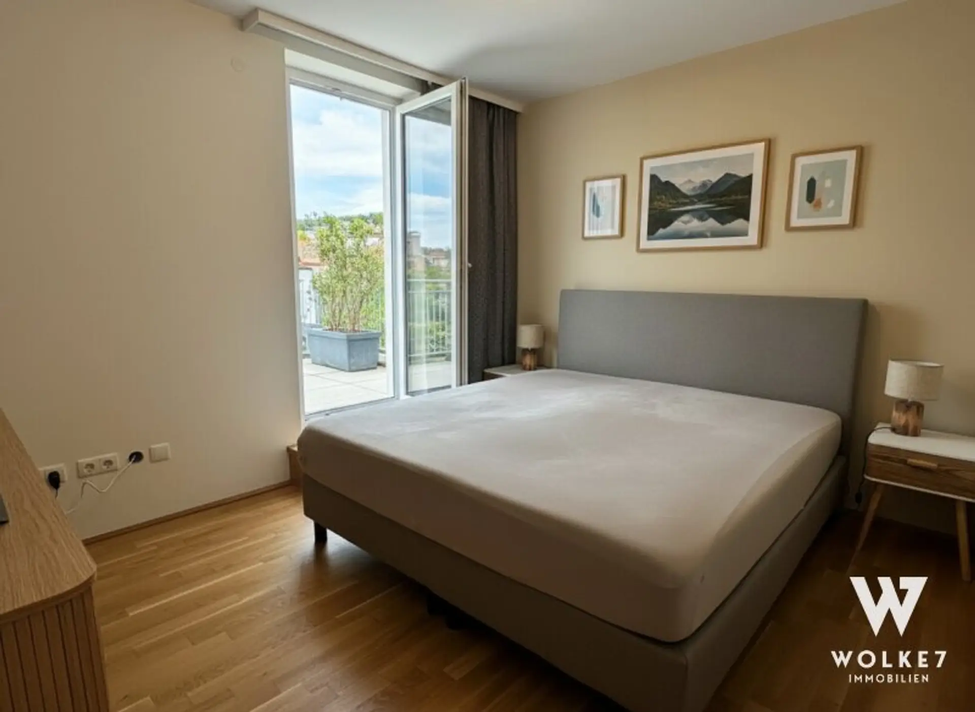 Schon beim Betreten überzeugt die Wohnung durch ihr durchdachtes Raumkonzept und ihre hochwertige Ausstattung: Einladend gestaltet sich das Vorzimmer mit Tischler-Einbauten, das großzügige Wohnzimmer mit Klimaanlage und einer eleganten DAN-Küche mit Miele-Geräten bildet das Herzstück der Immobilie. Von hier aus öffnen sich eine der beiden sonnigen Freiflächen – beide wurden mit hochwertigen neuen Pergolen ausgestattet, die ganzjährig für ein angenehmes Outdoor-Erlebnis sorgen. Ob Frühstück in der Morgensonne oder Sundowner mit Bisambergblick – die Terrassen sind wahre Wohlfühloasen.