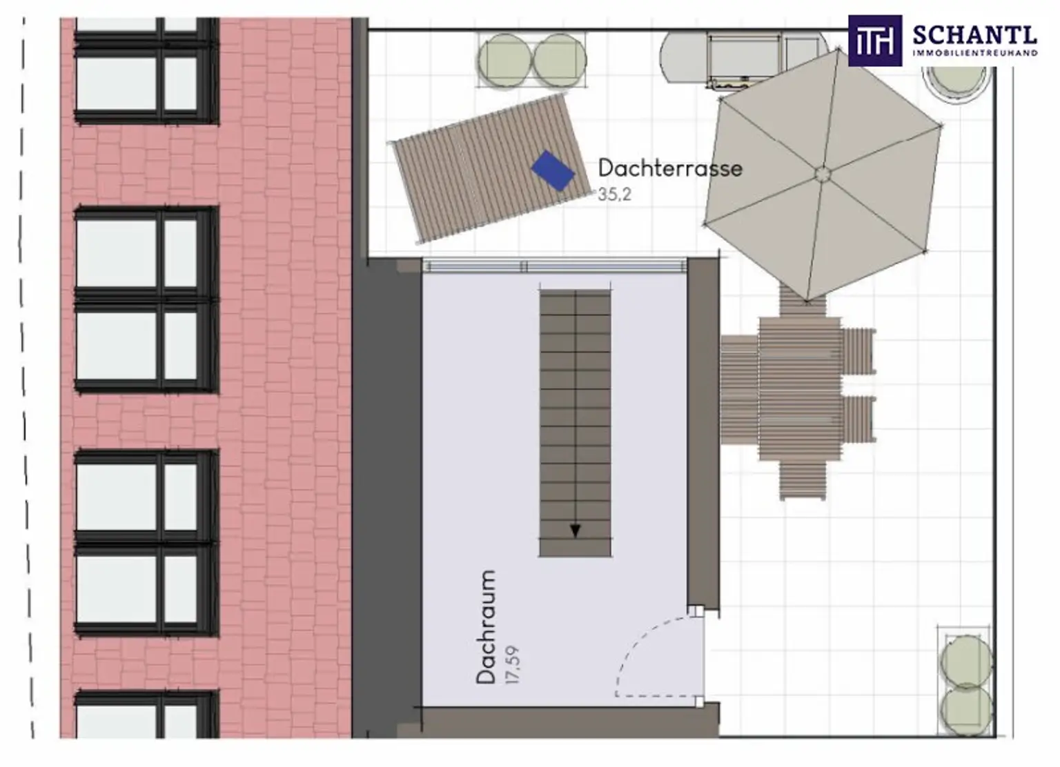 * beeindruckende Dachterrasse mit viel Platz für Lounge-, Ess- und Sonnenbereiche