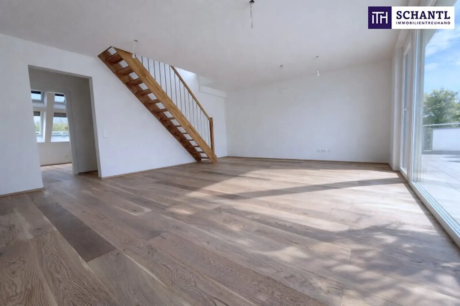 * elegante interne Treppe ins Dachgeschoss