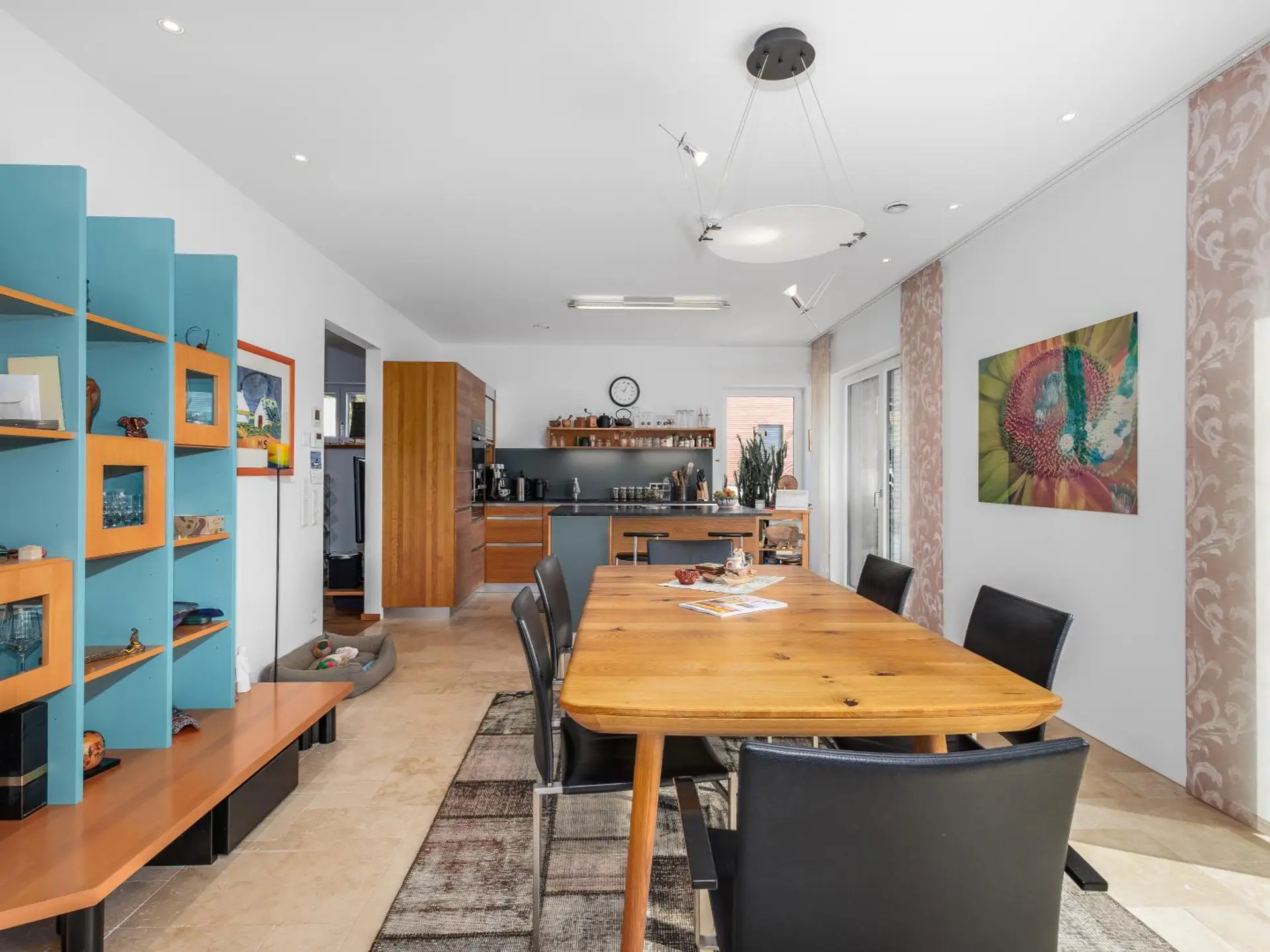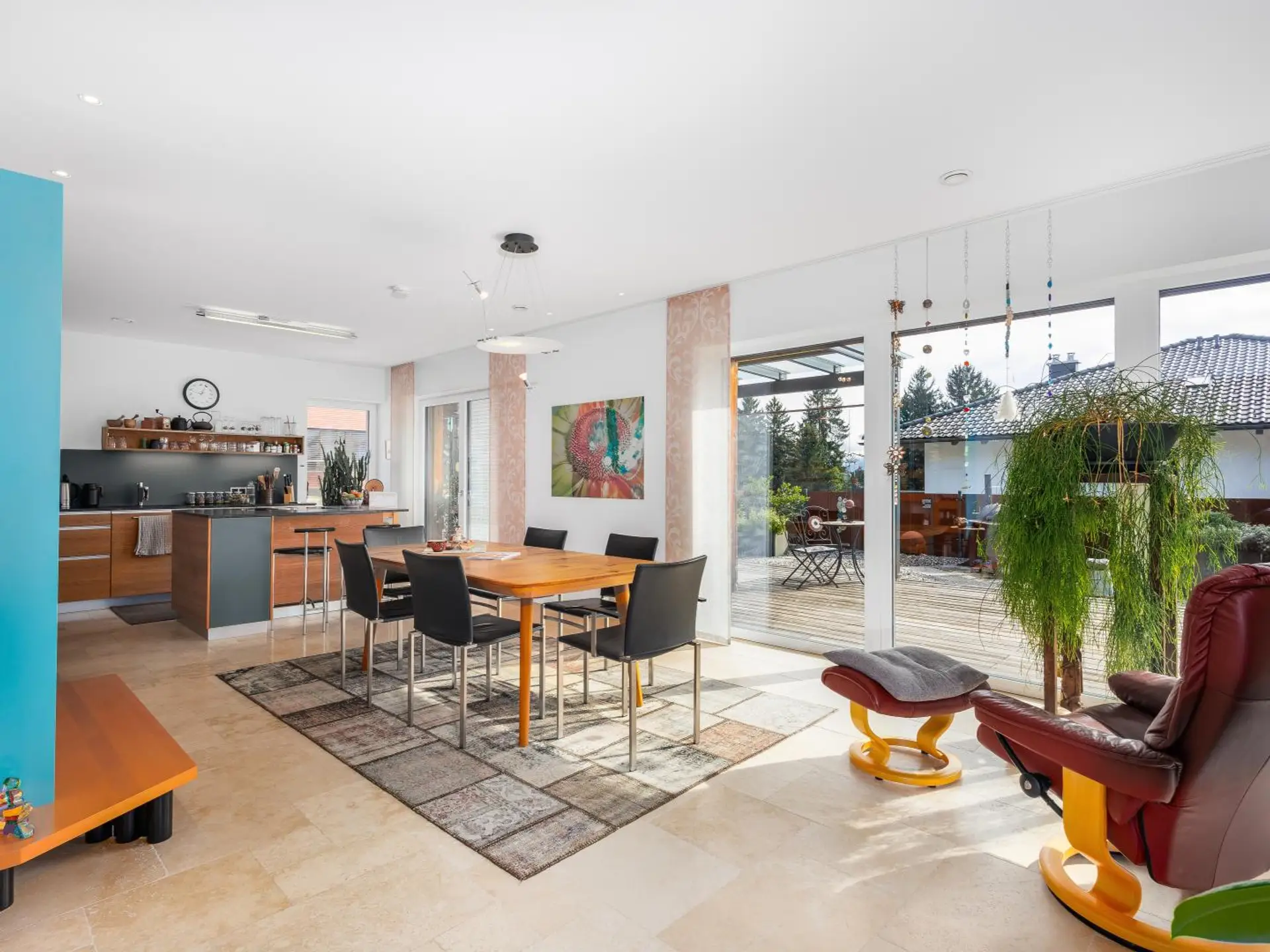 - Travertin Naturstein kombiniert mit Echtholzböden