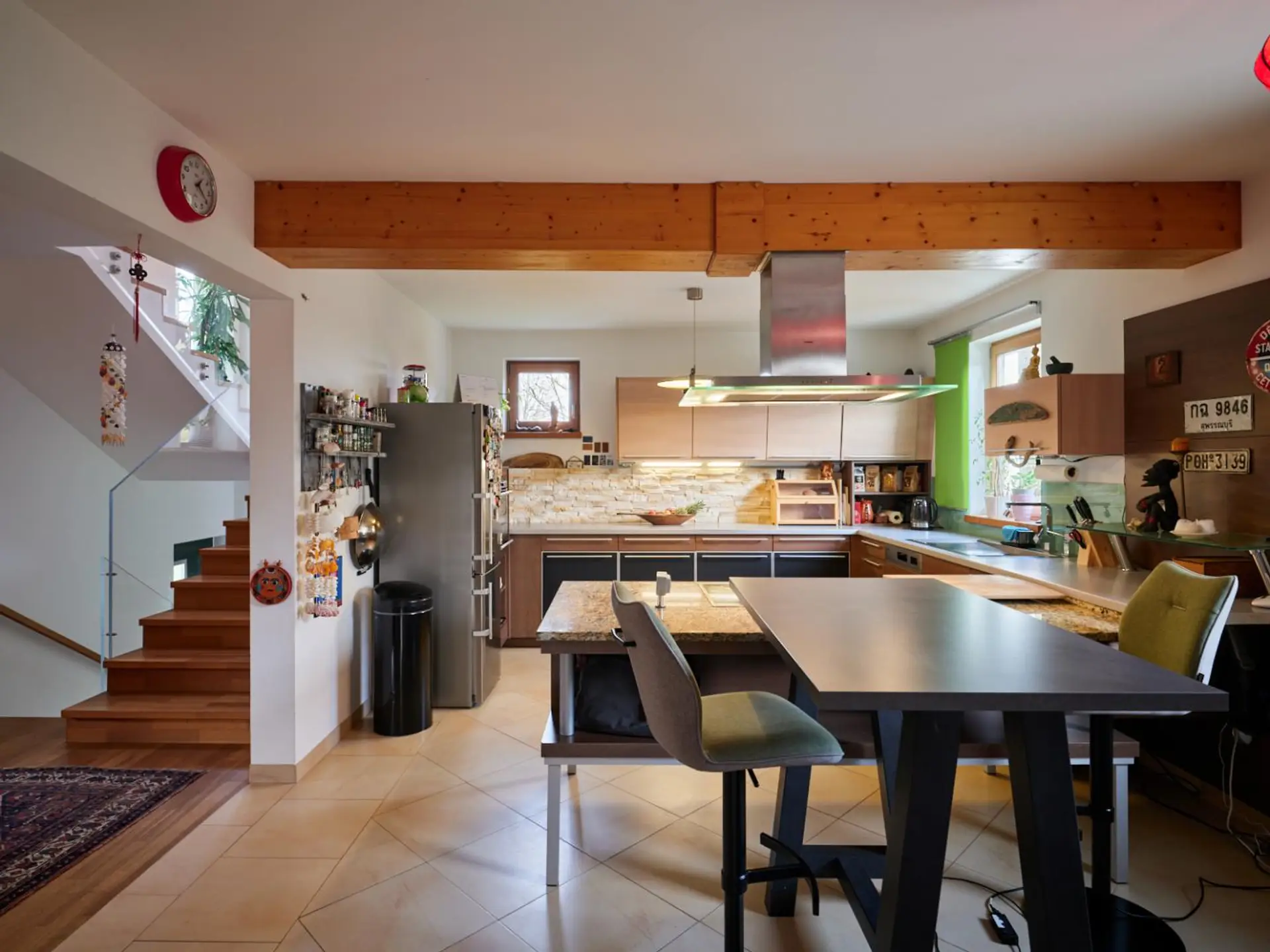 Das 2012 fertig gestellte Haus zeichnet sich durch viele moderne Details aus, große Fensterflächen, helle lichtdurchflutete Räume. Für die Innenraumgestaltung wurden hochwertige Materialien eingesetzt.