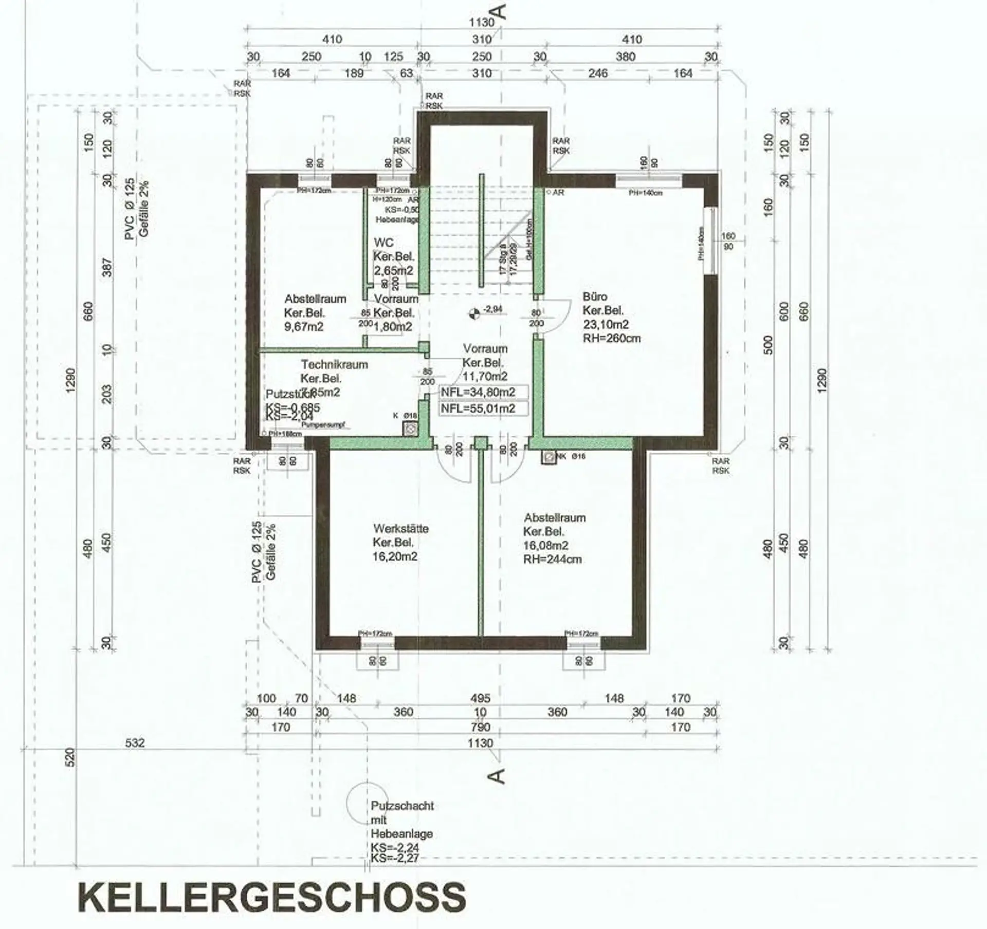 Das Gebäude ist voll unterkellert. Neben jeder Menge Stauraum bietet Ihnen der Keller Wohnraumqualität. Da auch der Keller über eine Fußbodenheizung sowie Fenster über Erdniveau verfügt, wurde hier ein Gästezimmer eingerichtet. Auch gibt es die Option, ein WC im Keller zu installieren.