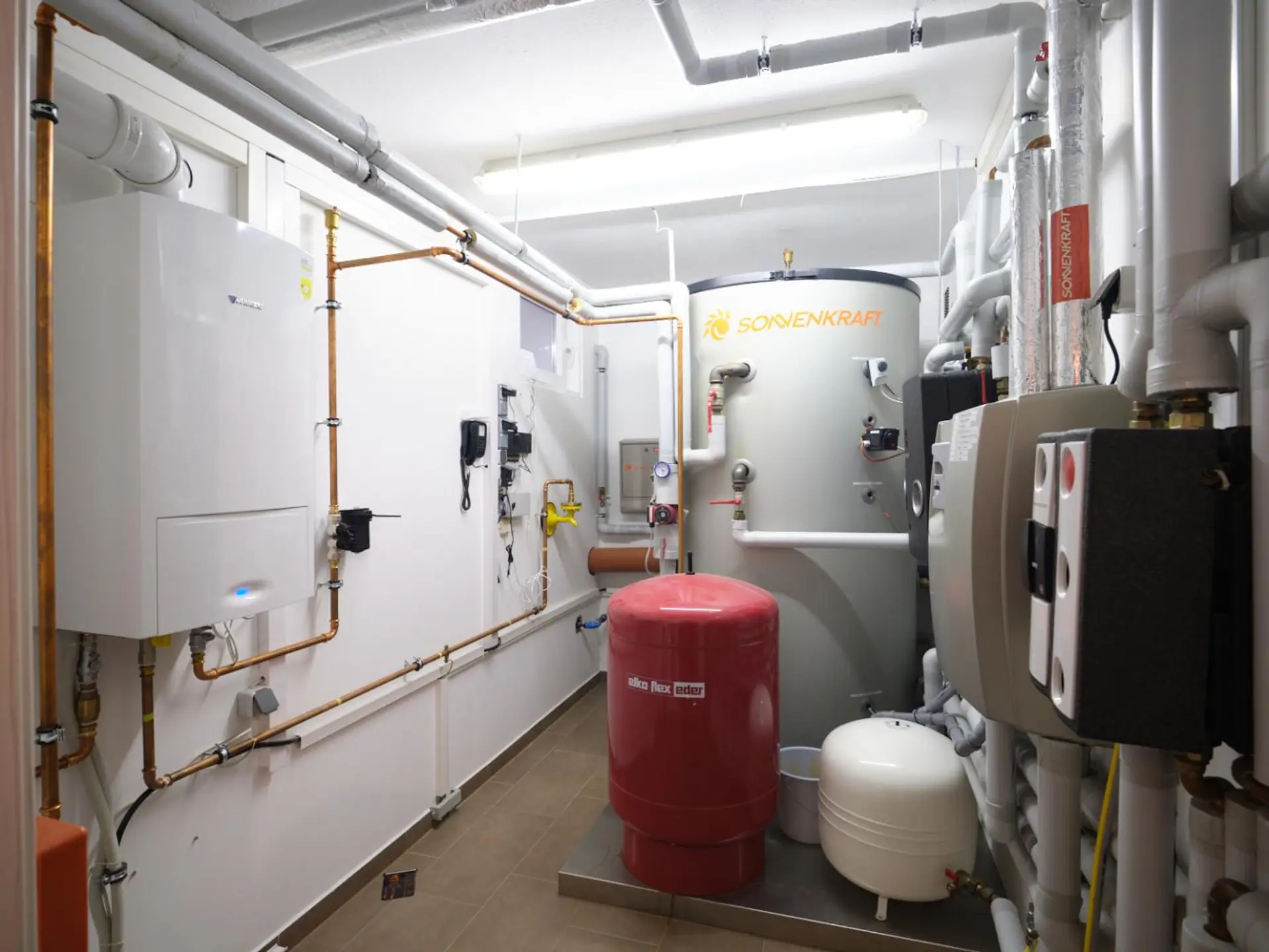Geheizt wird das Haus über einen großen Schwedenofen der sich im Wohnbereich befindet, dieser ist mit der Heizung verbunden, die zusätzlich über eine Solaranlage versorgt wird. Außerdem wurde 2020 als Alternative eine Gastherme von Junkers instaliiert.