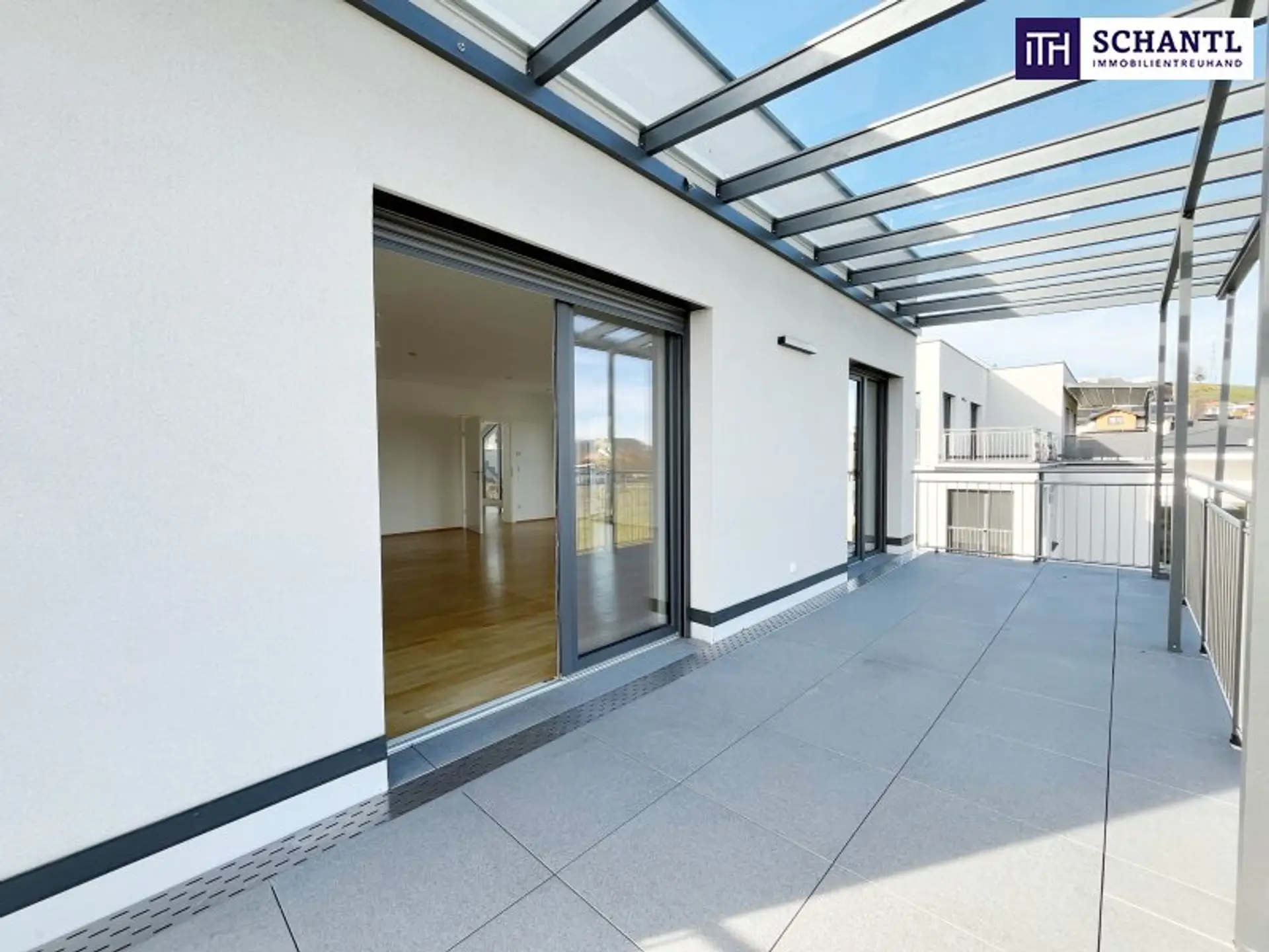 * 360°-Panorama-Dachterrasse mit ungefähr 60m², Wasseranschluss und Blick über die steirischen Weinberge