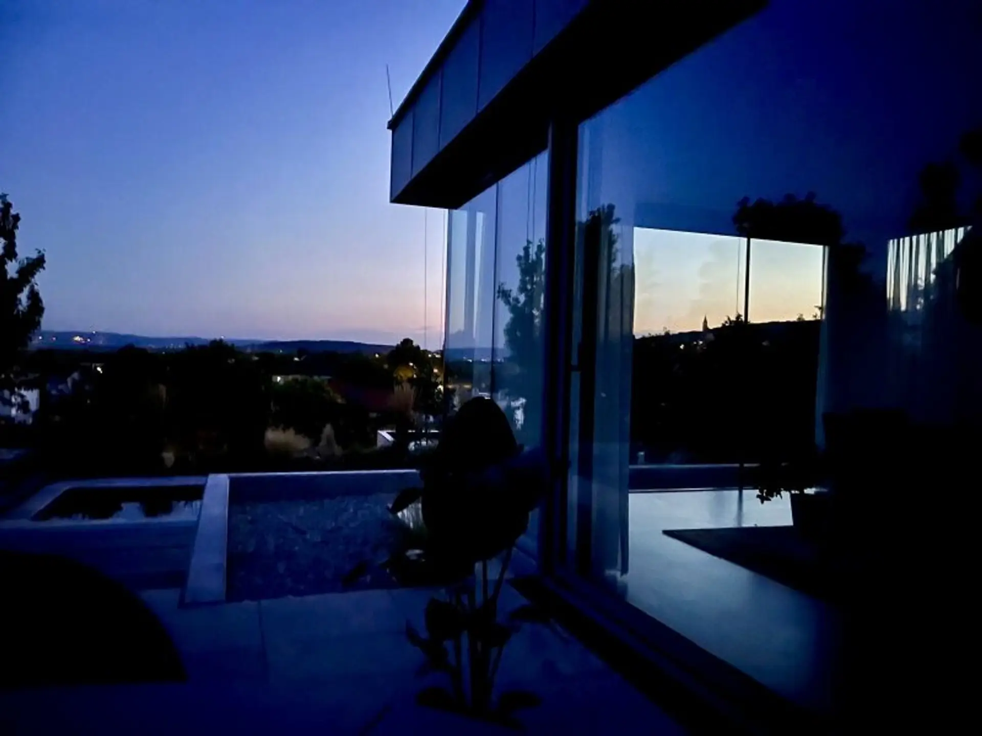 Bereits beim Betreten des Hauses eröffnet sich im Erdgeschoss der beeindruckende Wohn- und Essbereich mit 85 m², der durch raumhohe, aufschiebbare Glaselemente einen atemberaubenden Fernblick über die umliegenden Weinberge bis hin zur Burg Forchtenstein bietet. Dieser unverbaubare Ausblick wird Sie jeden Tag aufs Neue begeistern.