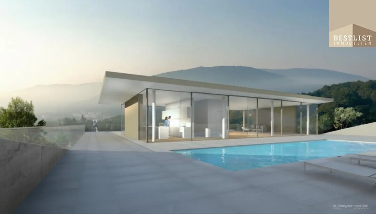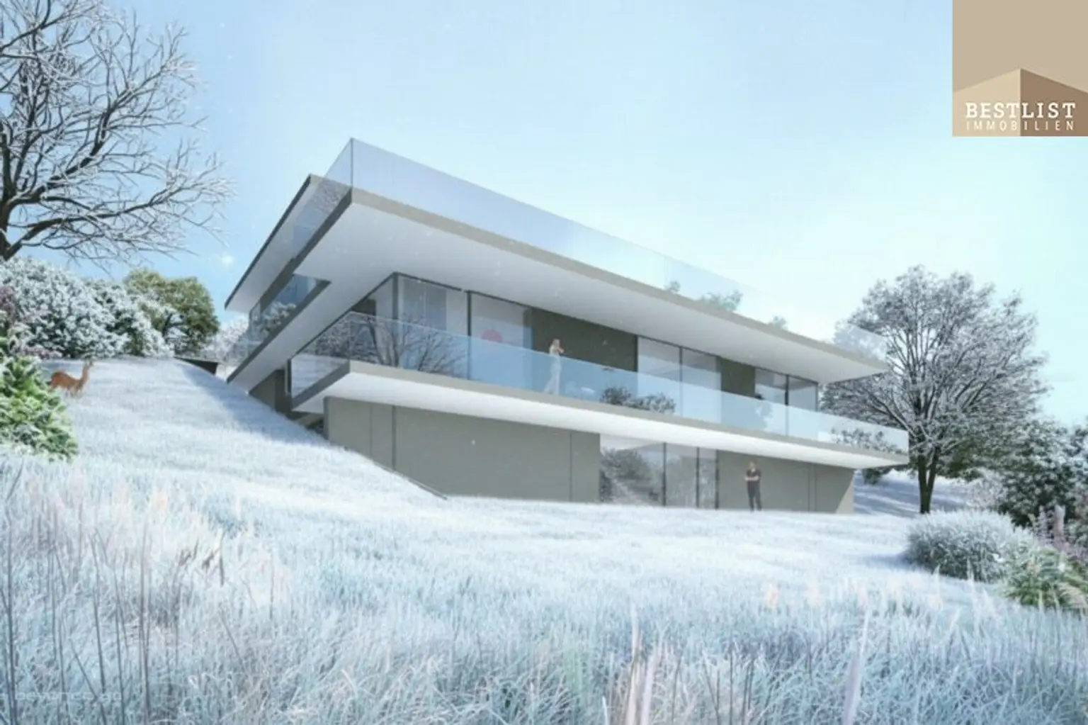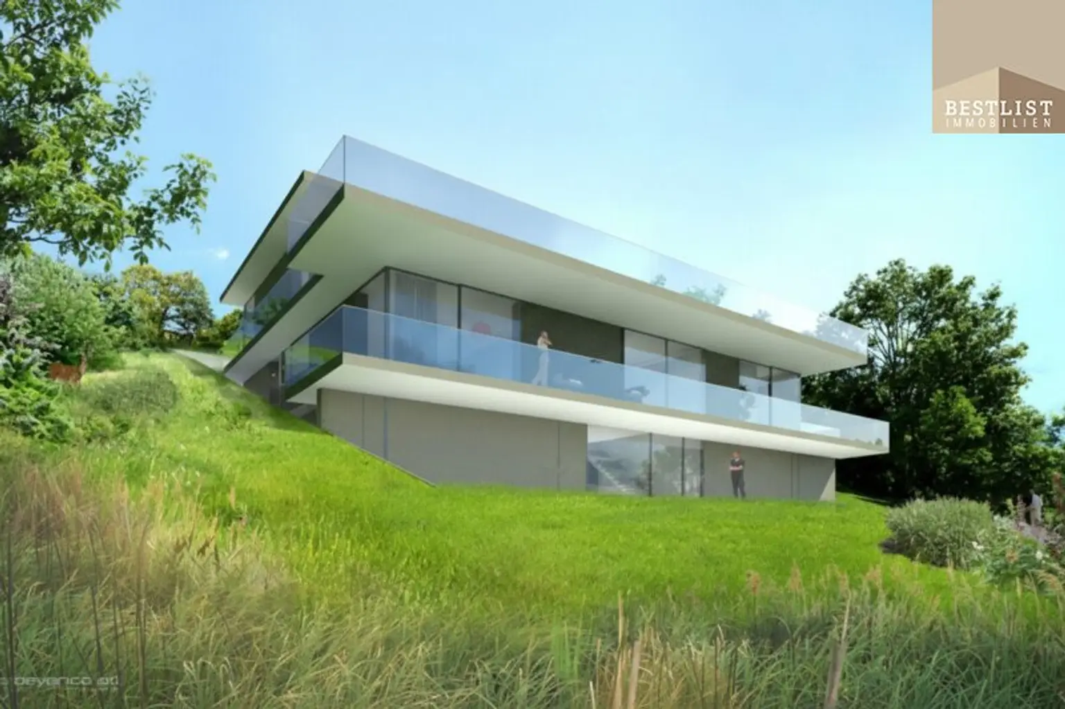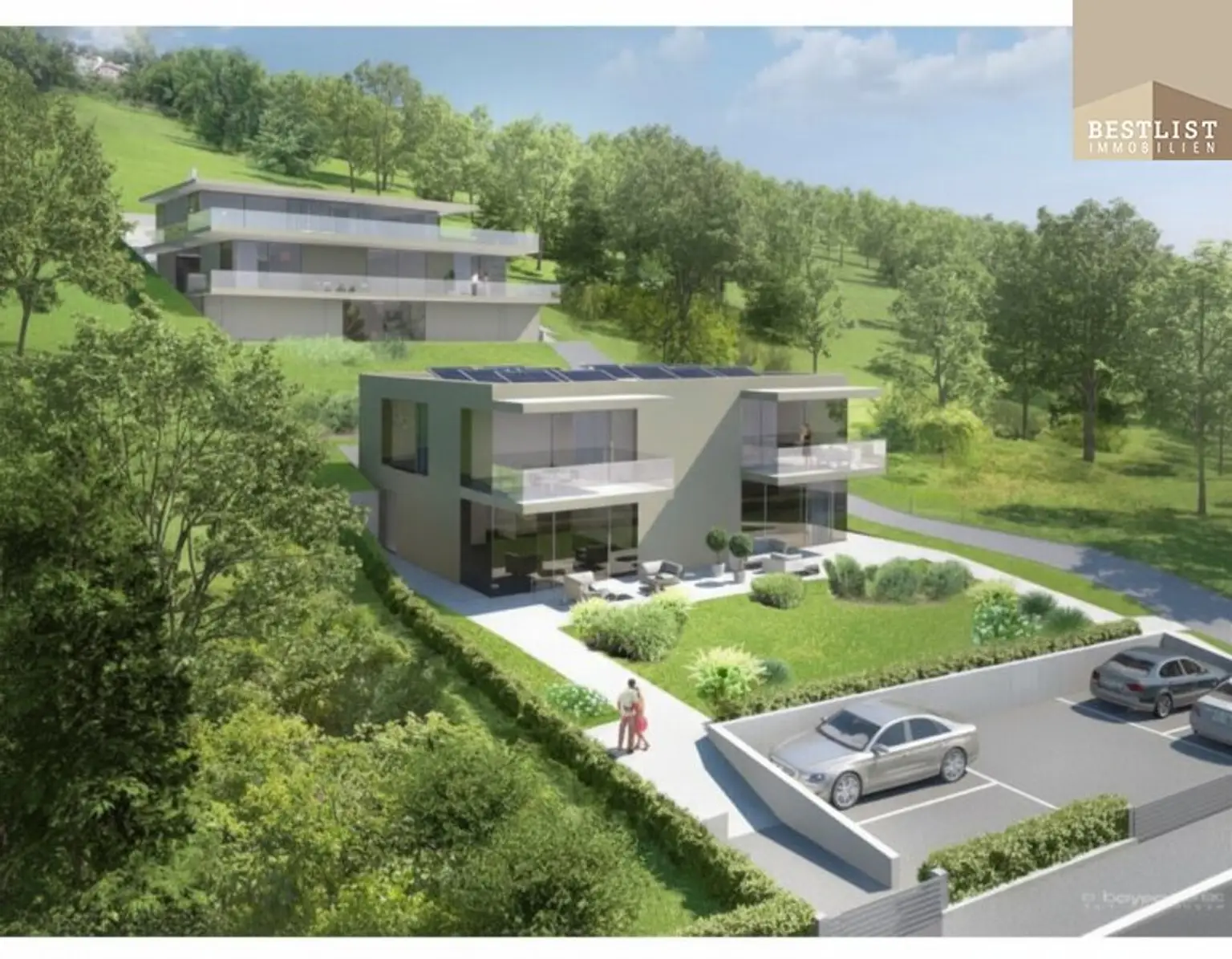 zeitgemäße, hochwertige Architektur, angepasst an die Hanglage