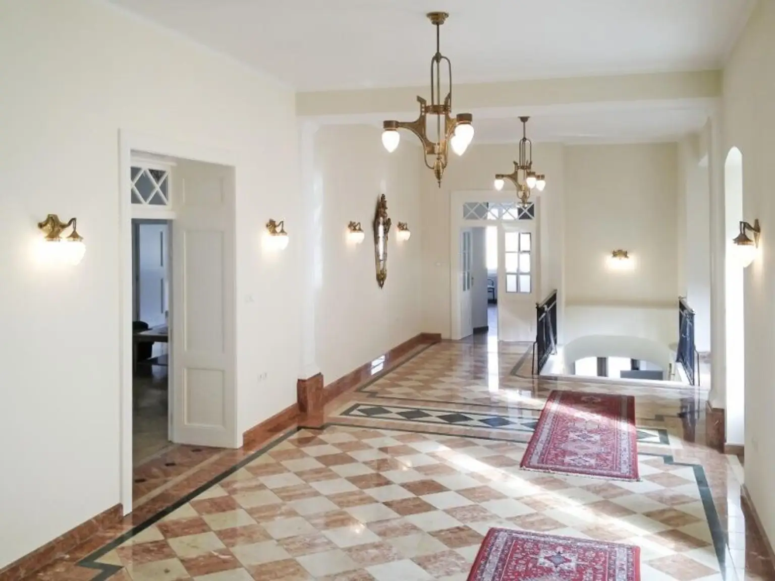 The representative manor house was originally built in the 19th century and underwent a high-quality full renovation in the 1990s. It impresses with spacious room layouts, an impressive hall, multiple living and utility areas, and a protected inner courtyard. The interior features high-quality, prestigious finishes, and the property offers versatile usage possibilities (residential, representative purposes, or special uses according to zoning).