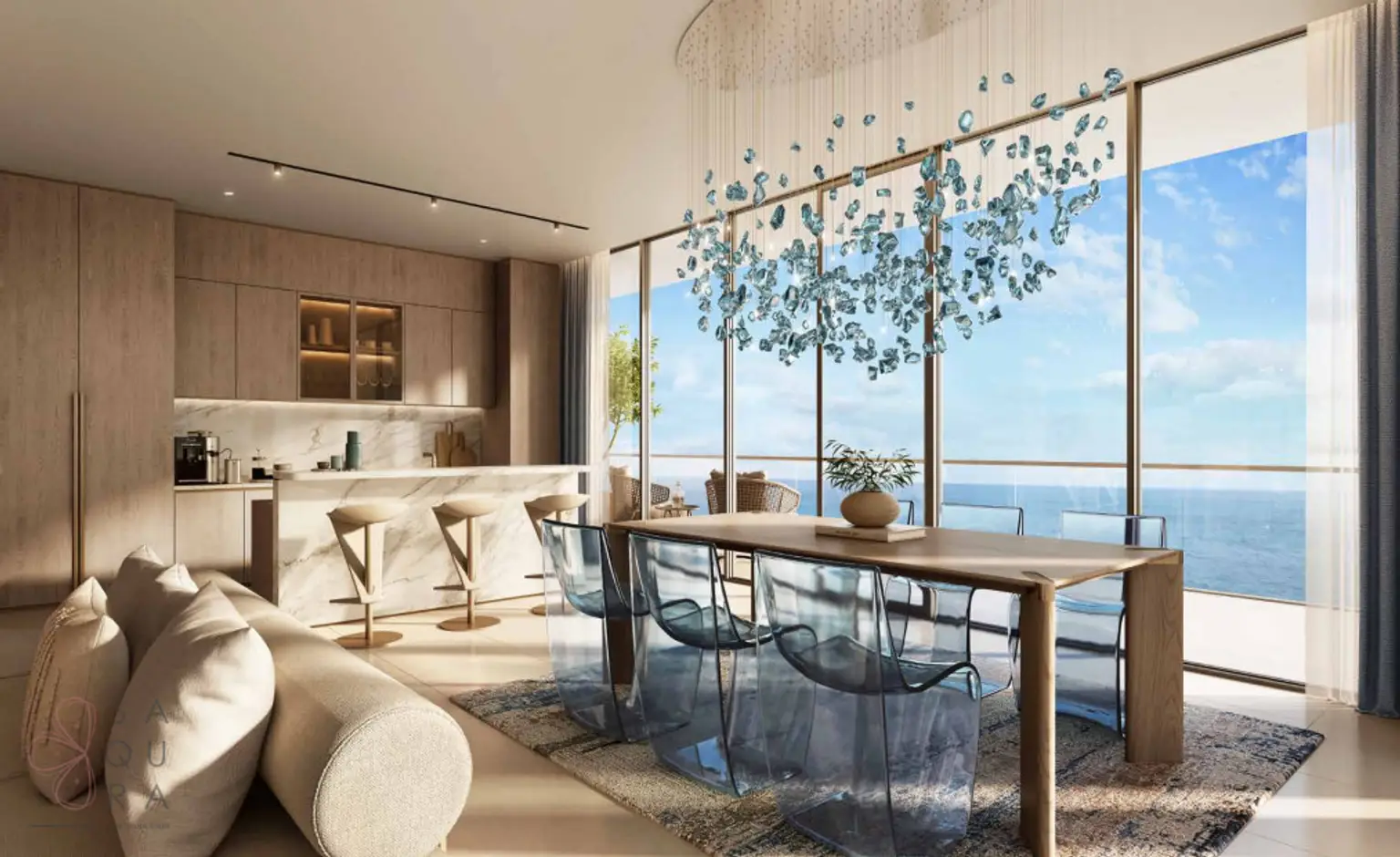 Inspired by the grace of water, this design integrates fluidity and serenity into every element.