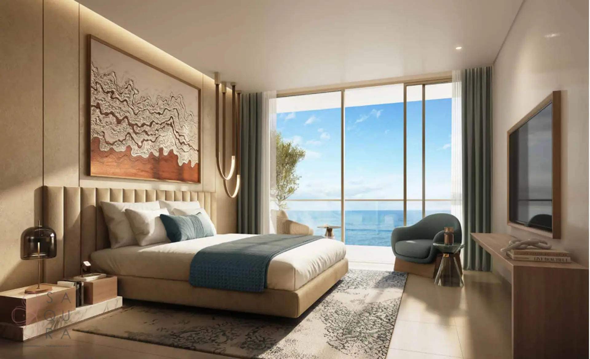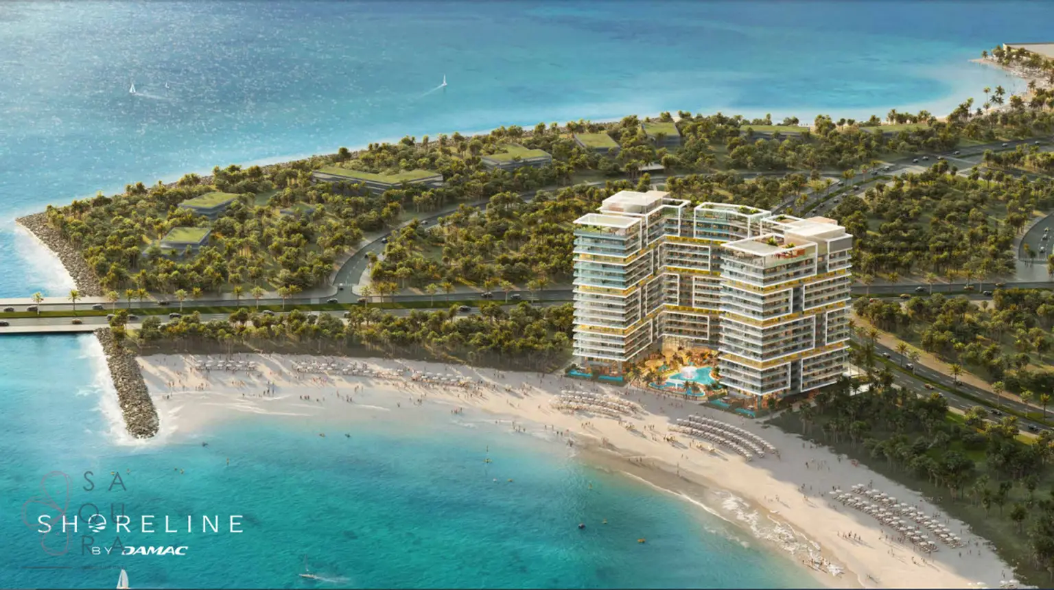 Panorama View: Expansive views of Al Marjan Island and the Arabian Sea.