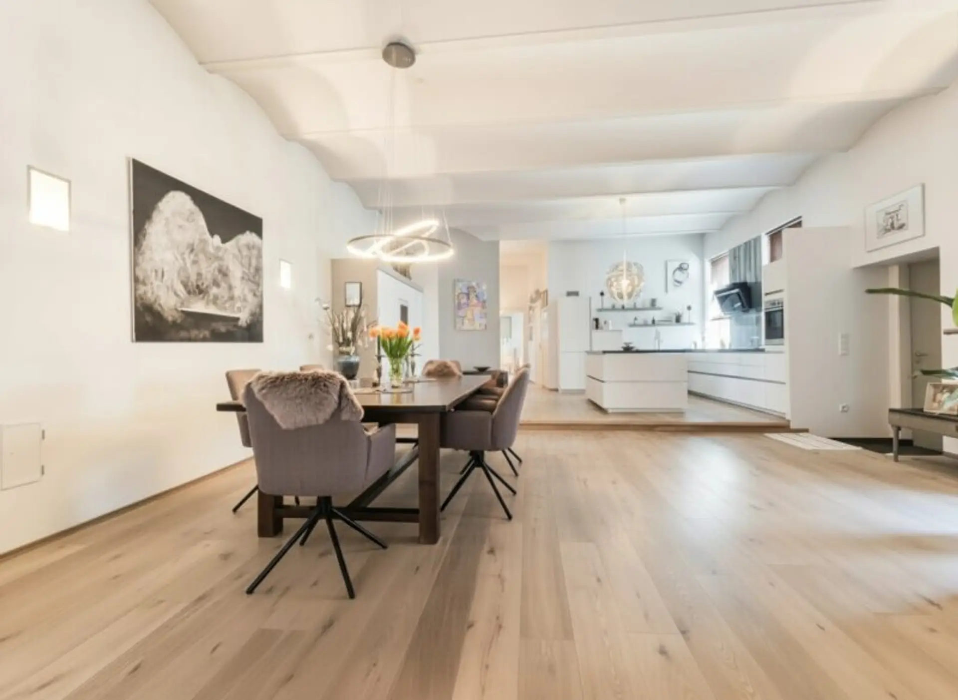 Das Loft beeindruckt durch hohe Räume, offene Strukturen und eine besonders hochwertige Ausstattung, die dem Objekt einen einzigartigen Charakter verleihen. Der weitläufige Wohnbereich mit großer, offener Küche bildet das Herzstück der Wohnung und bietet viel Platz für stilvolles Wohnen, gesellige Abende und inspirierendes Arbeiten.