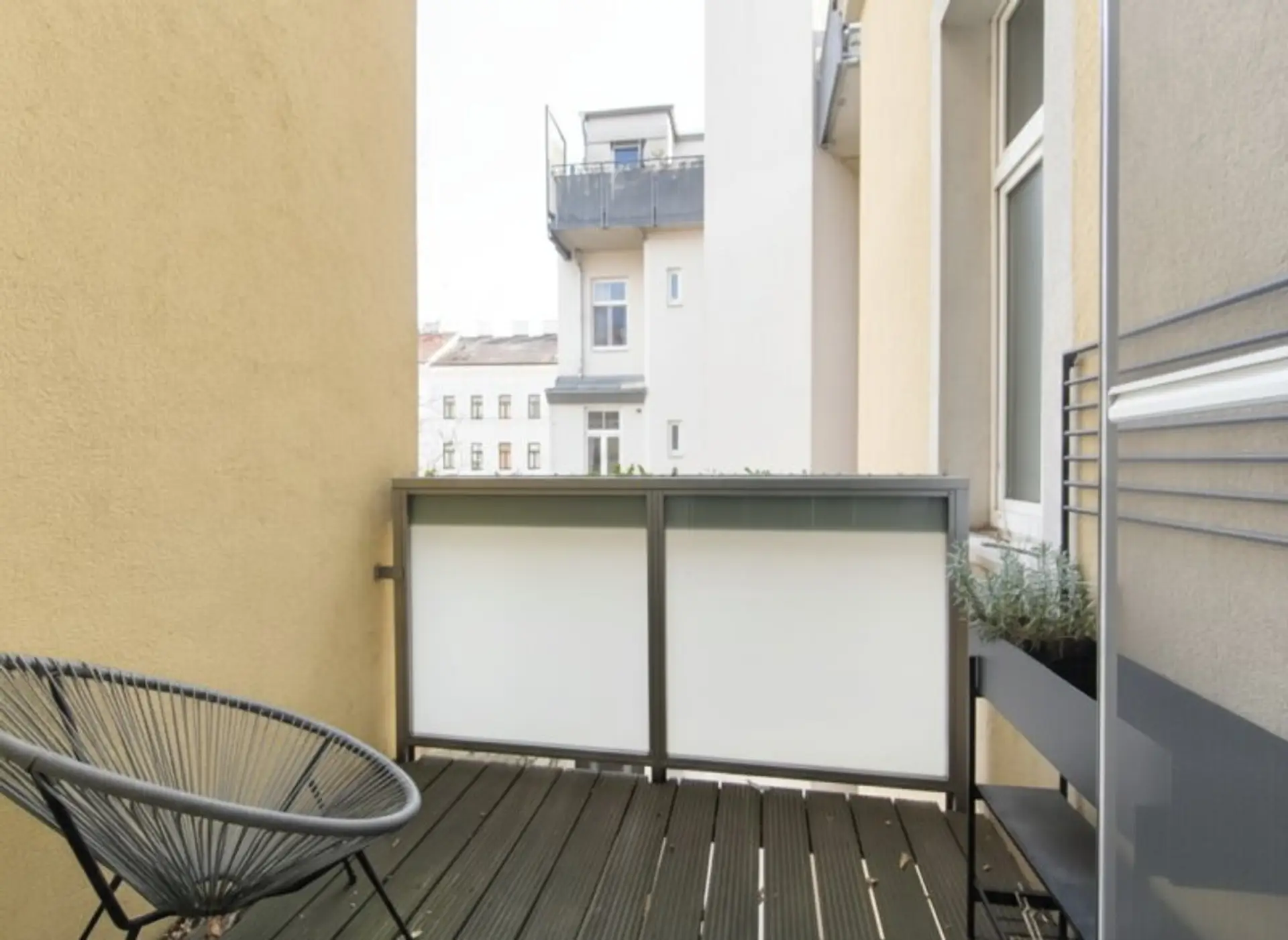 Ein privater, kleiner Balkon bietet einen charmanten Rückzugsort im Freien, während Ihnen zusätzlich eine gemeinschaftliche Dachterrasse zur Verfügung steht – ideal, um die Wiener Skyline und entspannte Momente unter freiem Himmel zu genießen.