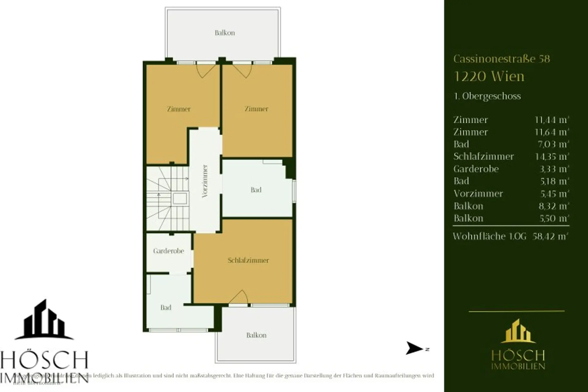 * zwei Balkone im Obergeschoss (ca. 8,32 m² und 5,50 m²)