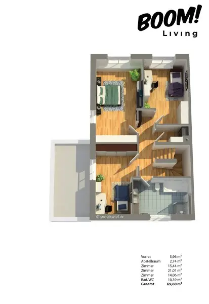 2 Balkone (gesamt ca. 31,19 m²)