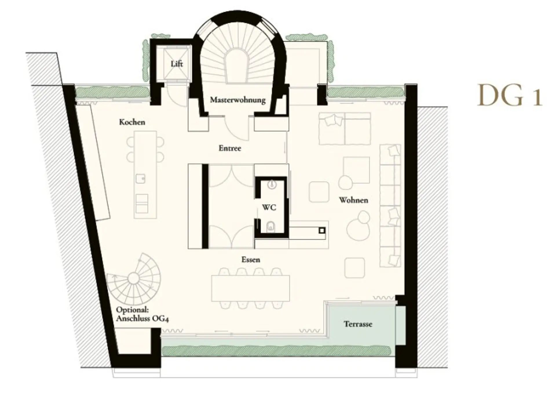 In den beiden obersten Etagen (6. und 7. Obergeschoss) entfaltet sich die eindrucksvolle Masterebene – eine luxuriöse Kombination aus Wohn- und Schlafbereich, die höchste Maßstäbe in Design, Ausstattung und Raumwirkung setzt. Großzügige Raumhöhen, lichtdurchflutete Flächen, durchdachte Grundrisse und feinste Materialien schaffen ein unvergleichliches Wohnambiente.